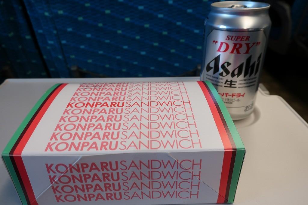 新幹線のおともは先ほどのコンパルのエビフライ。