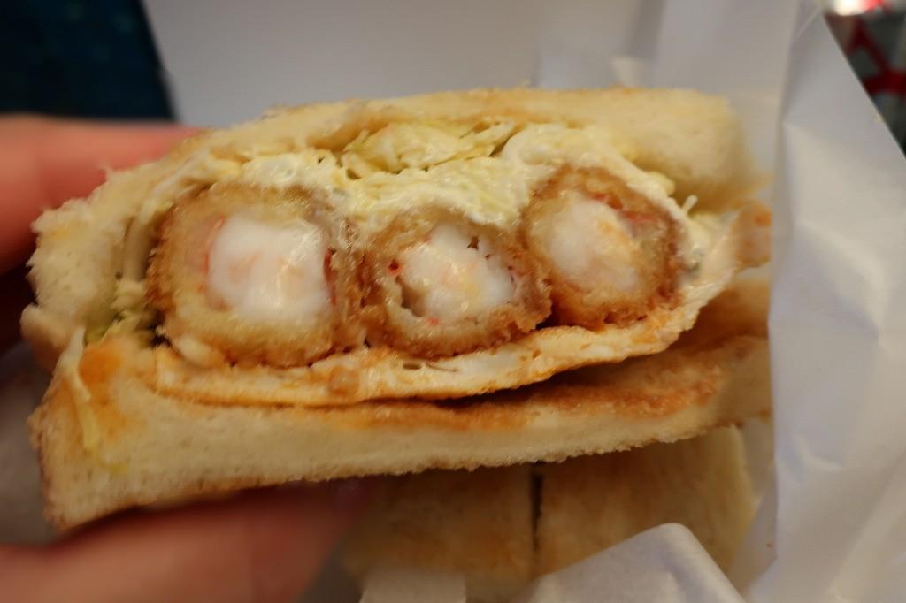 もちろんエビフライサンドをゲット。待ち時間10分くらいでした。