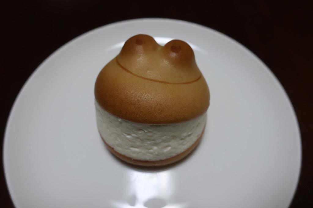 こしあんが入ったカエルのお饅頭に、生クリームとクリームチーズをミックスしたクリームが挟まれいます。フレーバーは2種あり、これはクリームチーズ&レモン。もう1種はラムレーズン&くるみです。同じフレーバー2個入りの状態で売っていました。和洋折衷で美味しかった!クリームは酸味少なめでまろやかな味わい。要冷蔵の商品です。 -