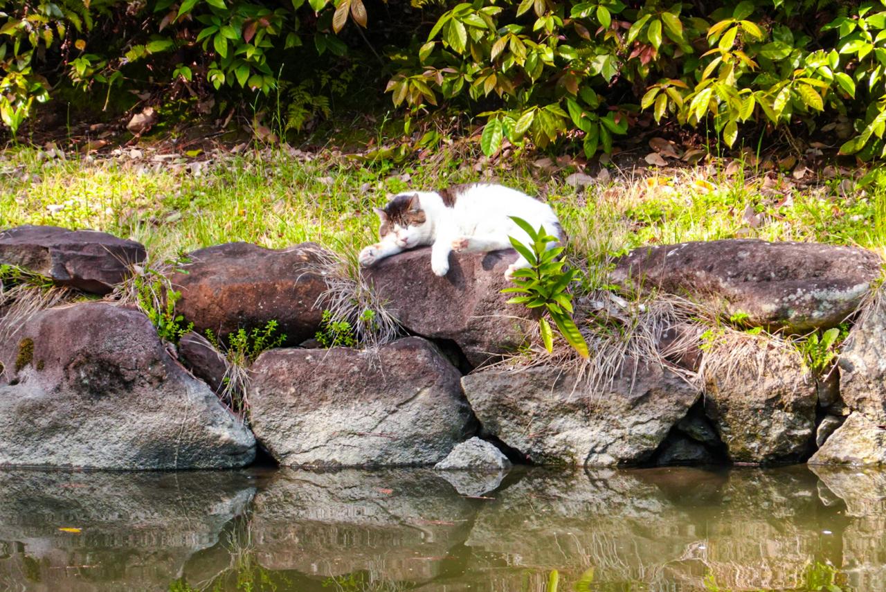 鯉を狙っているのかと思ったら、お昼寝中の猫