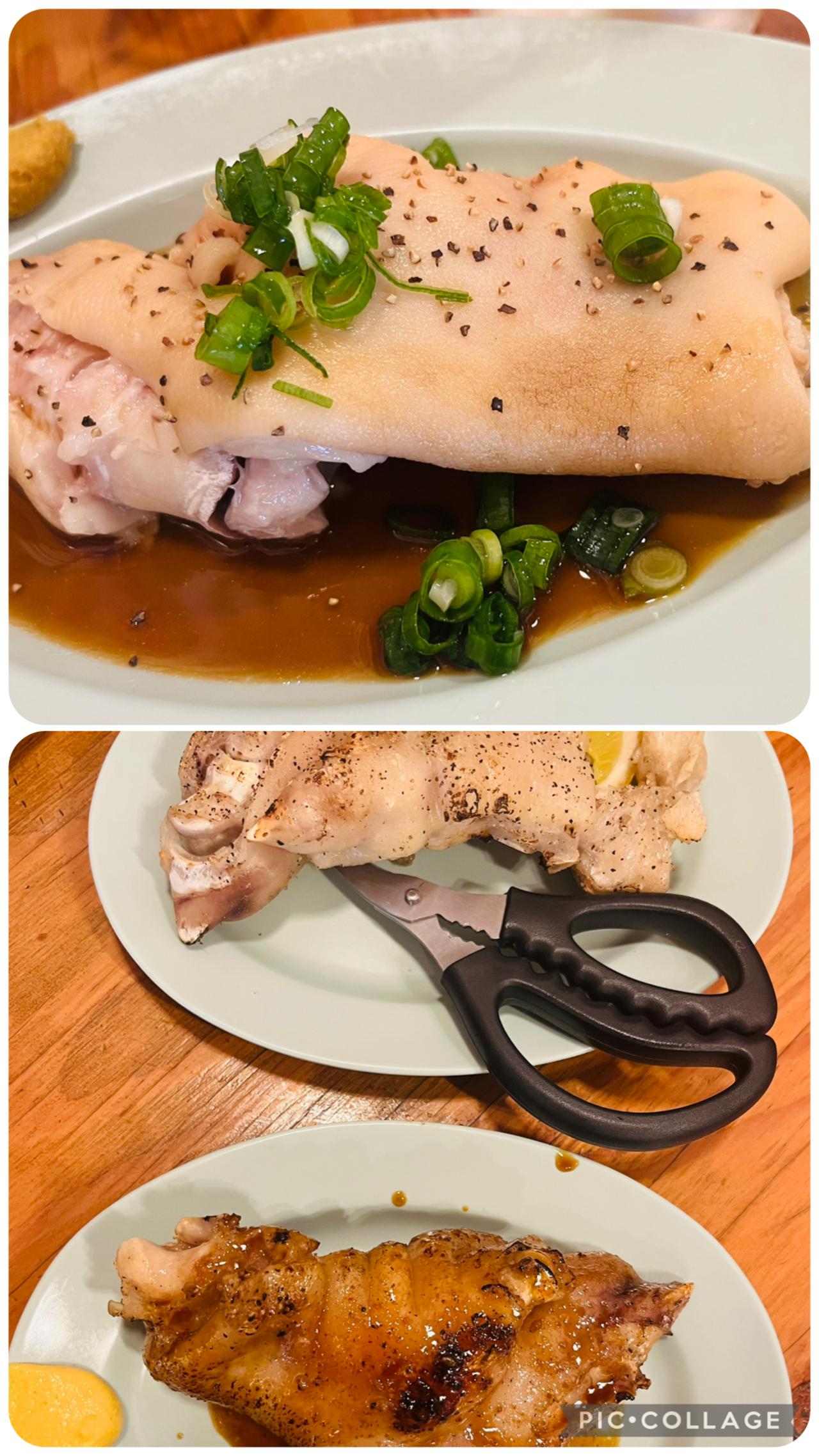 焼き豚足の塩とタレ、豚足煮も食べる愛方
