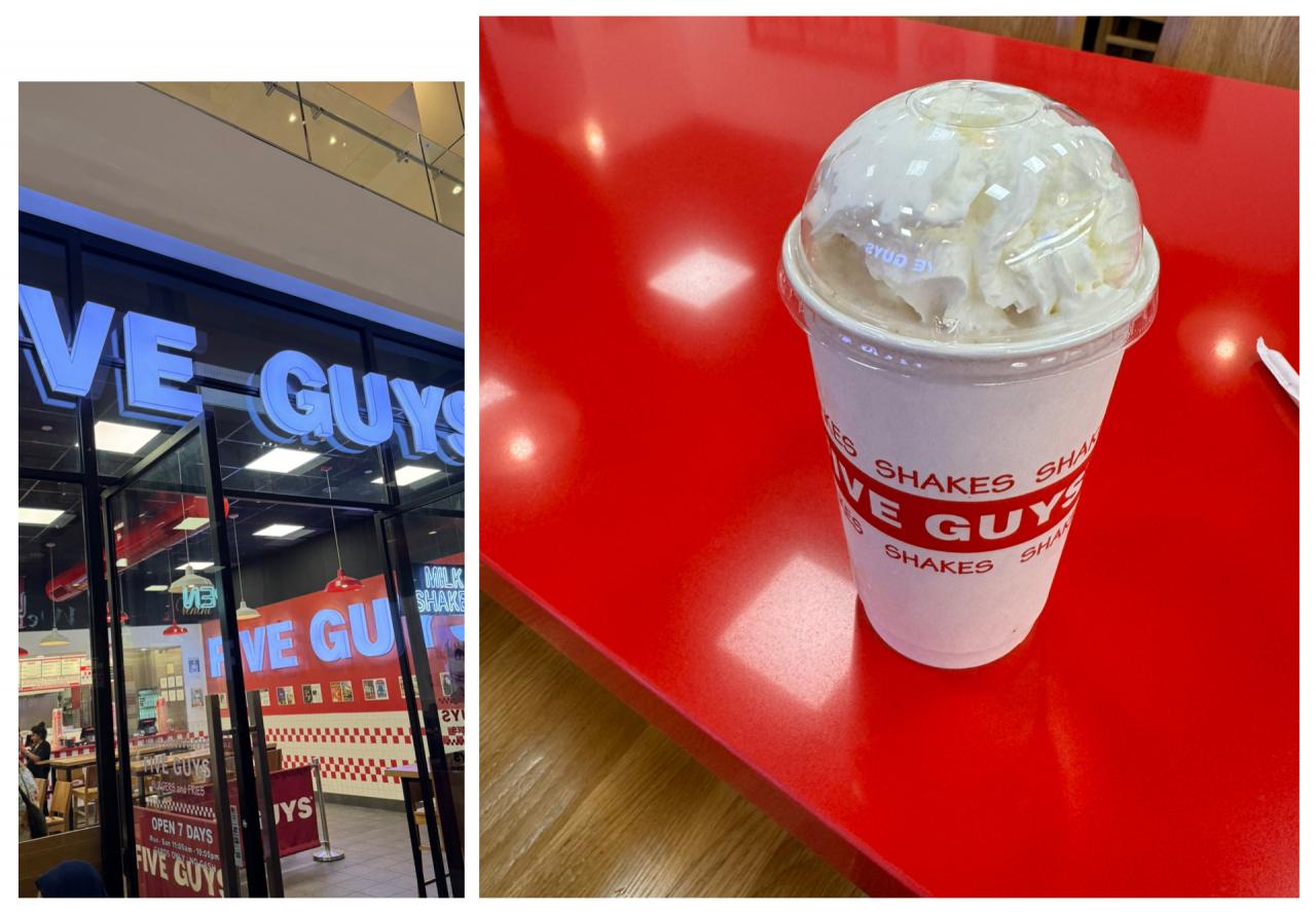 昼食代わりに、まだ日本未進出?の「FIVE GUYS」で評判のシェイクなどを!確かに美味いが、高い(泣)為替の問題もあるだろうが¥1,000以上ともなるとね・・