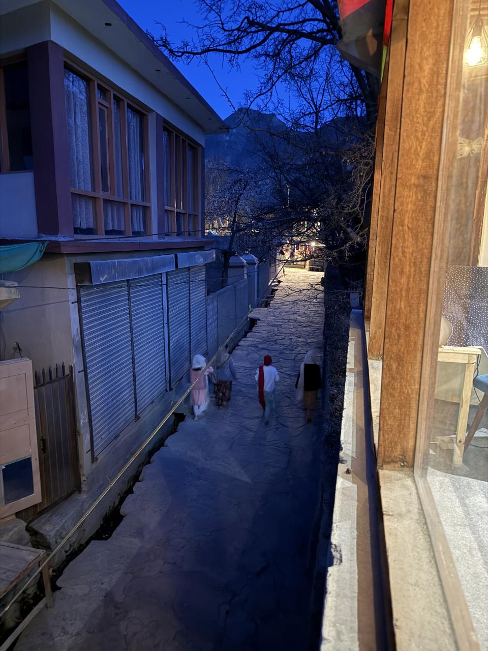 日が暮れた跡のアルチット村の路地