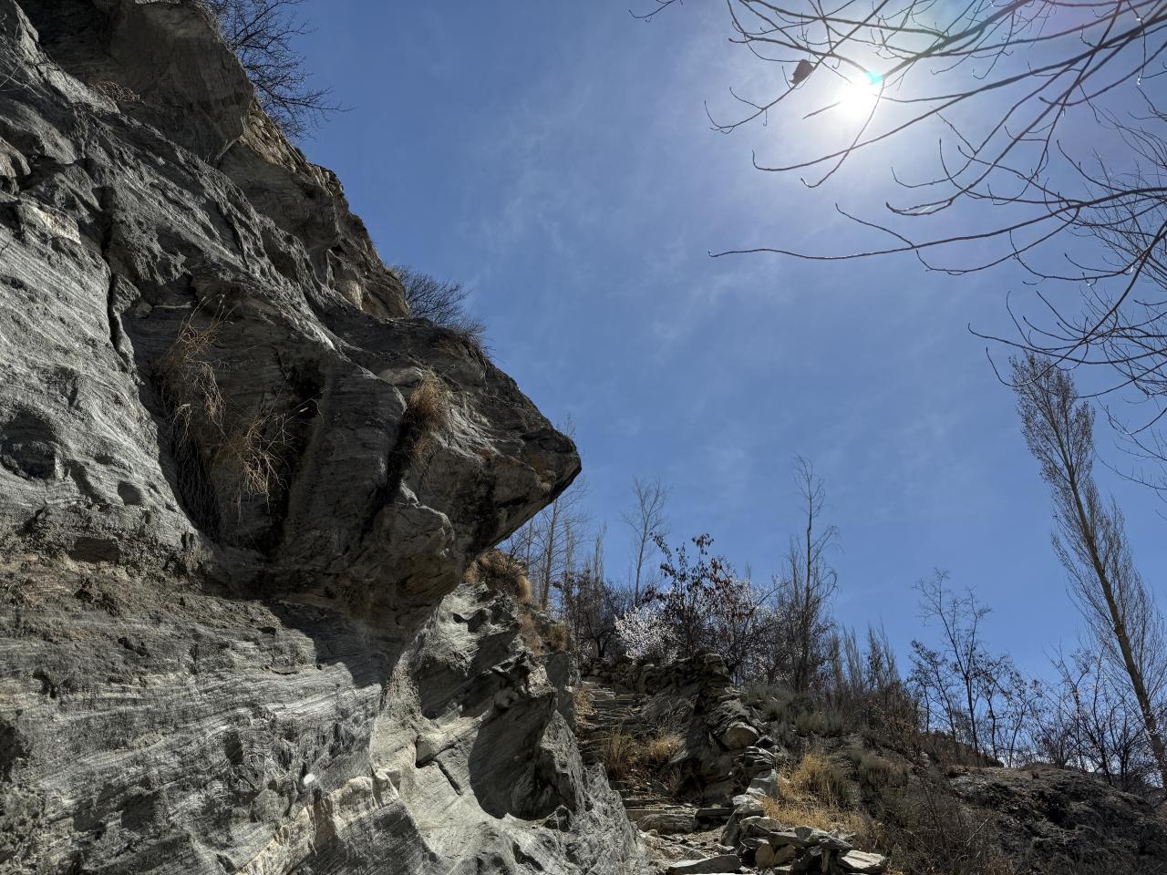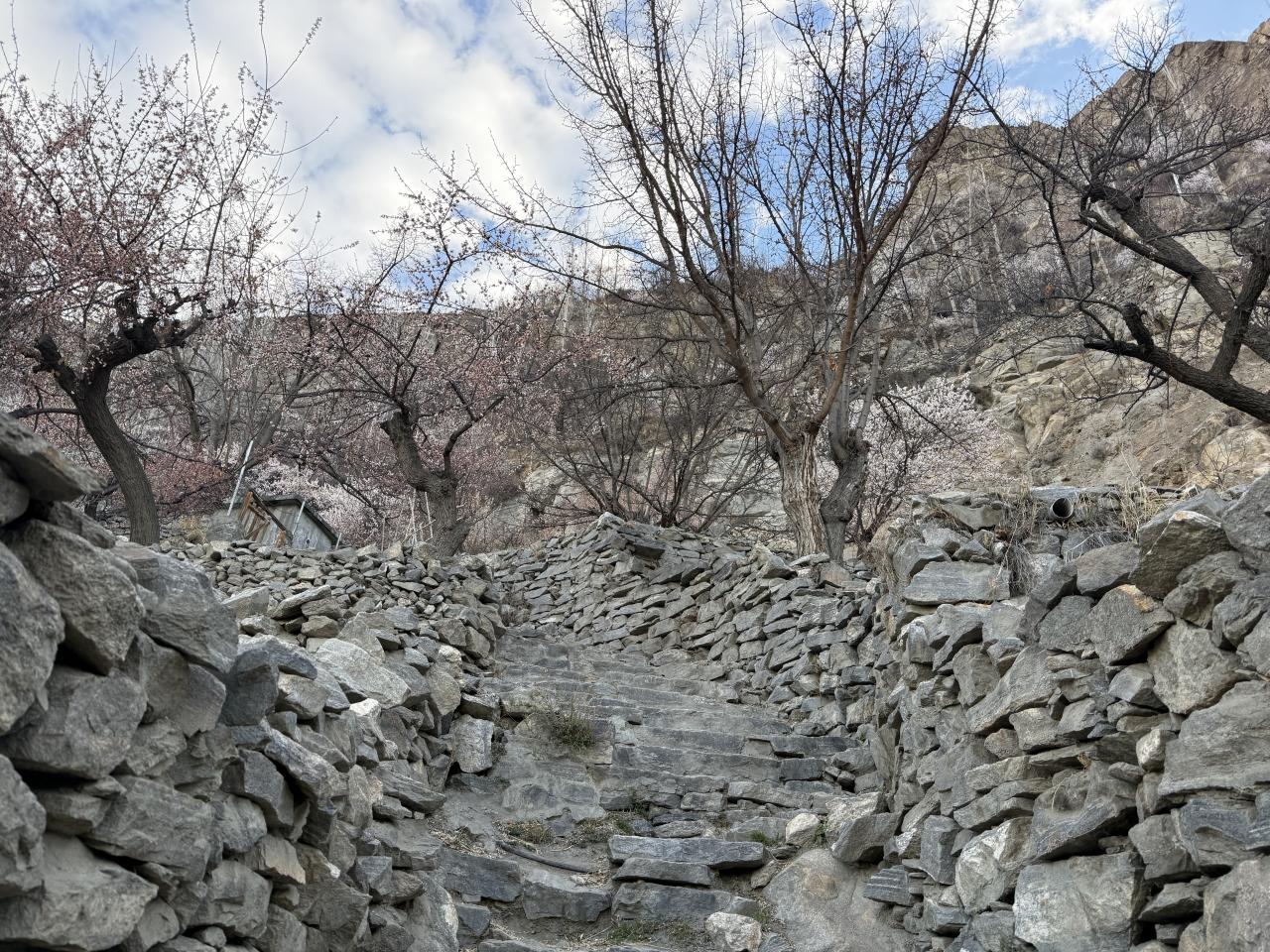 フンザは高地なので登ると息が切れる。休みながら登っていきます。 -