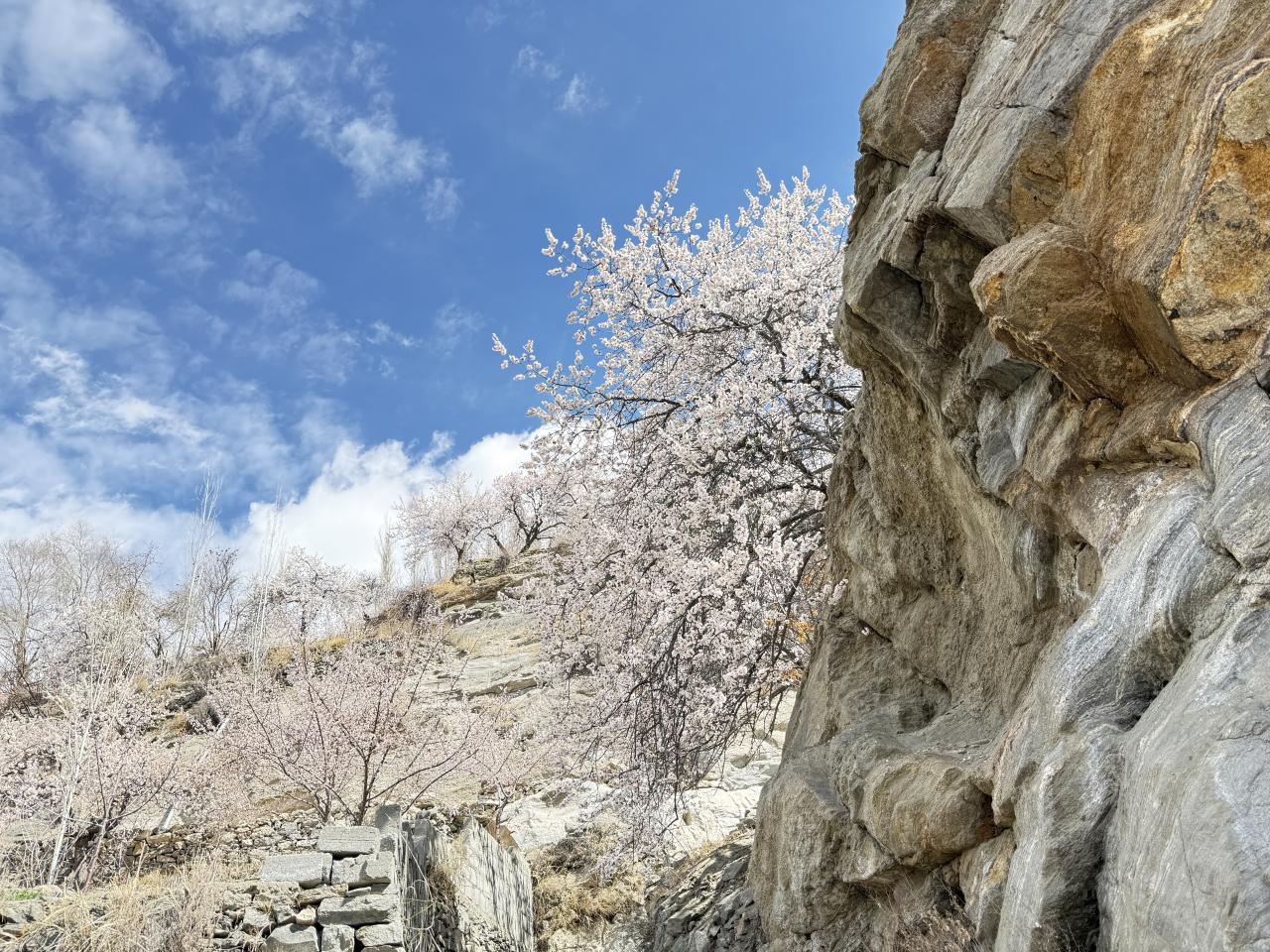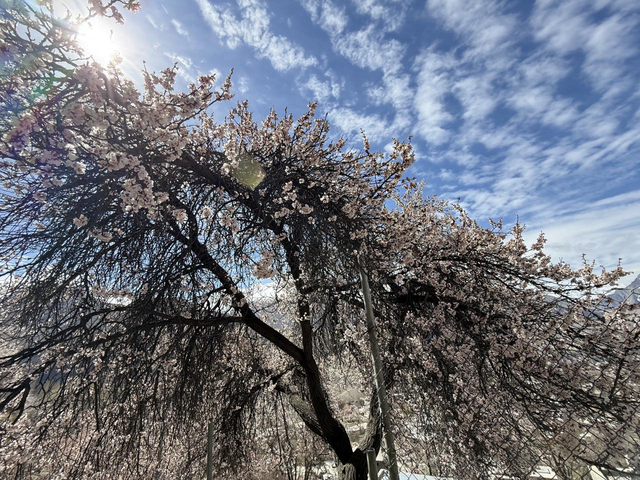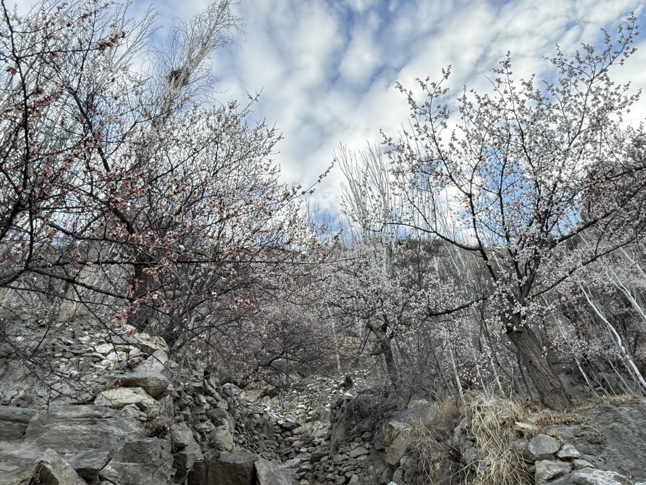 上のほうは杏やリンゴ、チェリーなどの花が満開です。