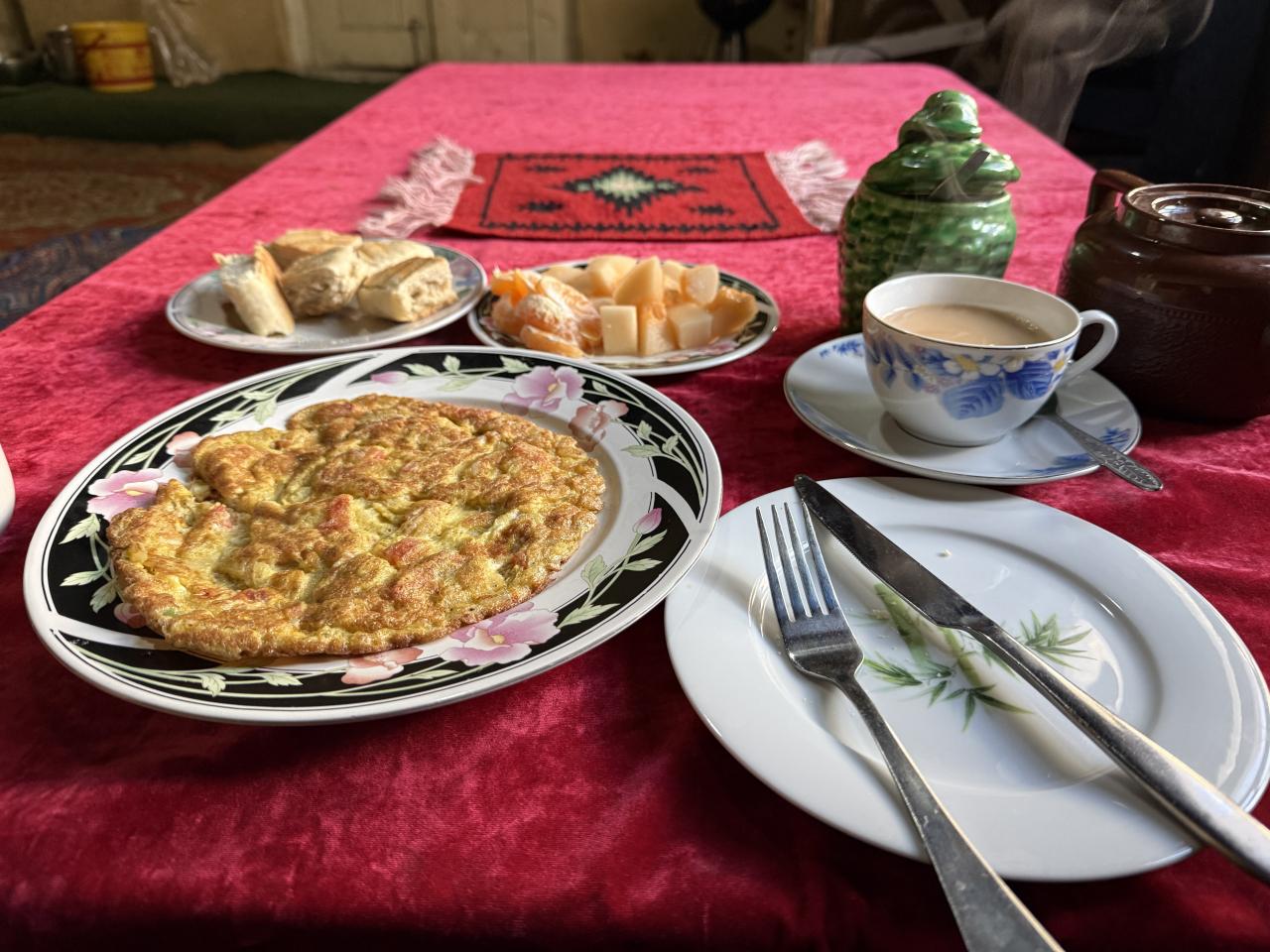 のどかゲストハウスの朝ごはんは基本的にカフェでいただきますが、この日は特別にシェールさん家で、シェールさんのご飯をいただきました。
