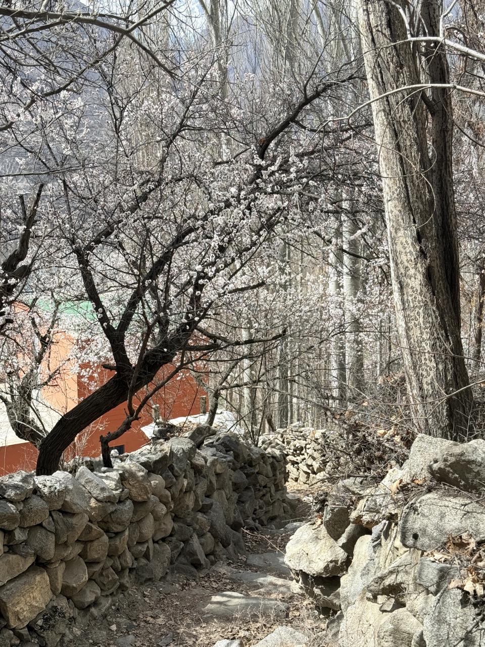 ところどころ、アプリコット(杏)の花もちらほら見えてきました。