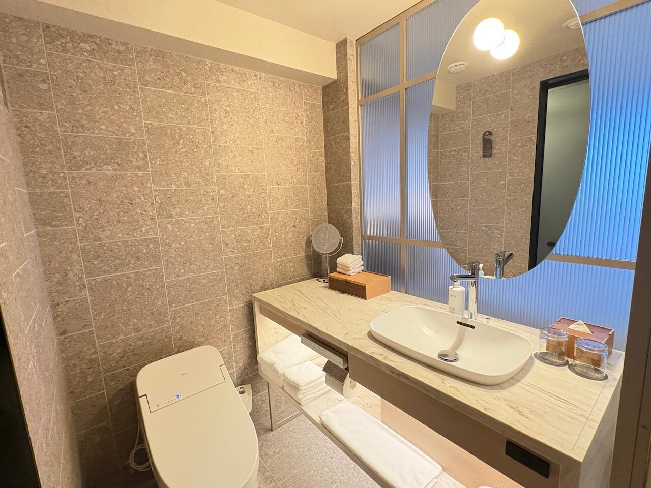 バスタブはなくシャワールームのみですが、このホテルには大浴場があります。