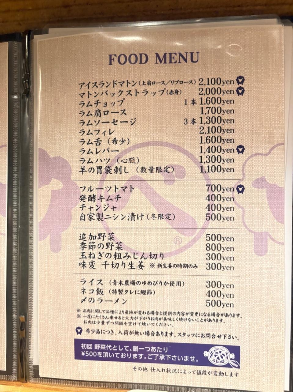 最初に季節の野菜の品揃えを聞いた時は色々食べたいと思いましたが、野菜にも羊臭がしたので追加オーダーはせず。 -