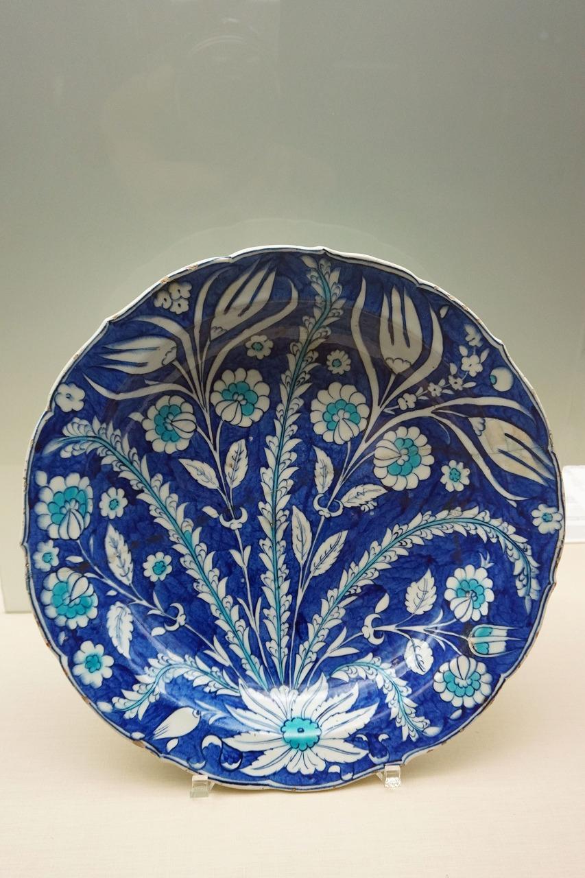 オスマントルコ時代から好まれるチューリップやカーネーションが描かれたイズニック陶器です。1550年頃にトルコのイズニックで造られたものです。