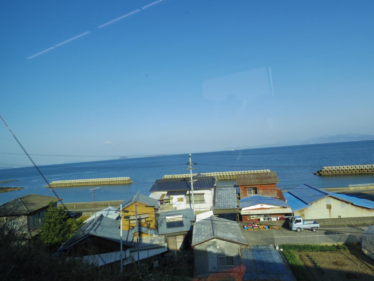 車窓には瀬戸内の穏やかな景色が広がります。 -