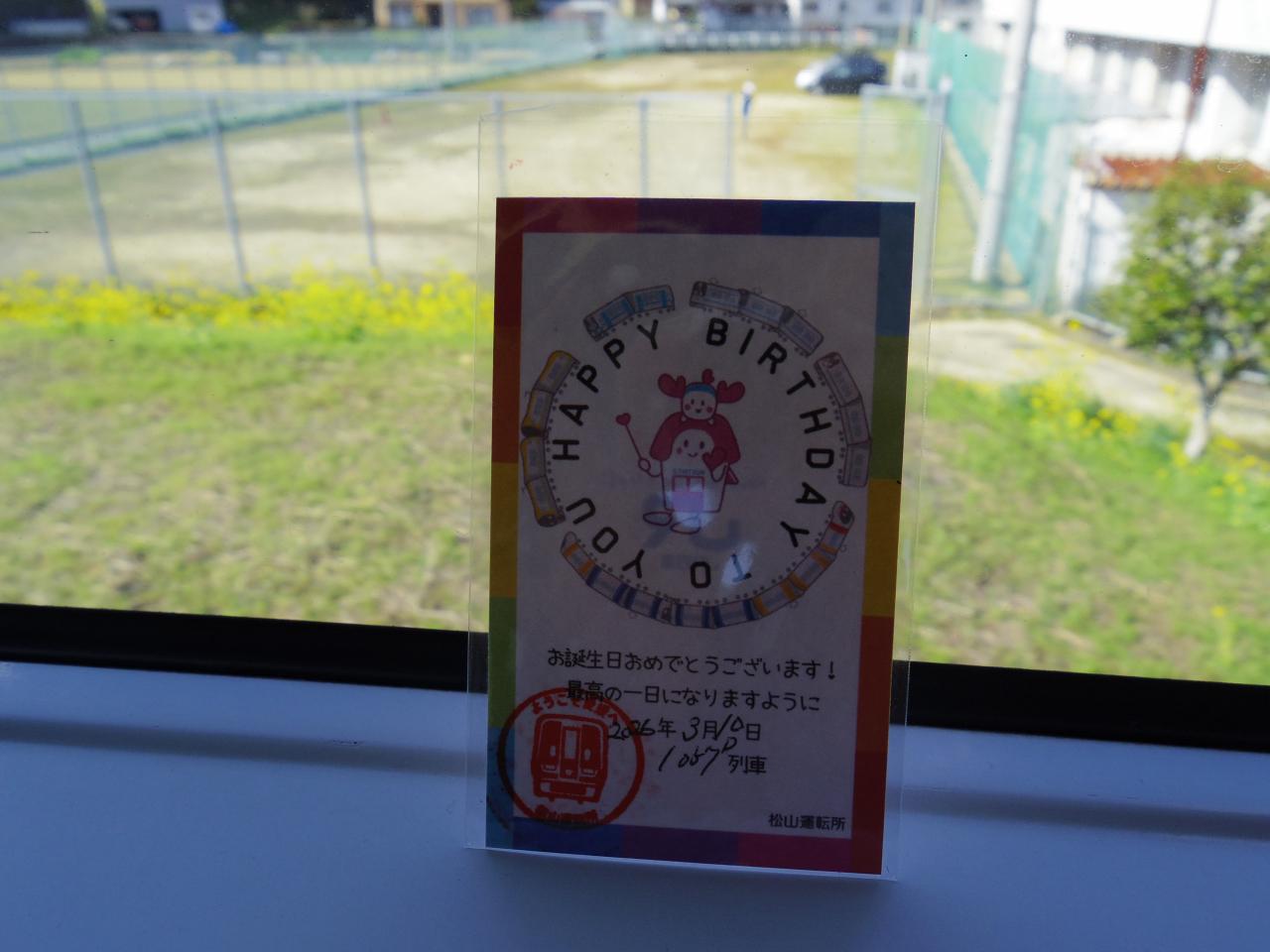 検札した車掌さんが戻ってきて、「バースデイ切符でしたよね」とメッセージカードを渡してくれました。