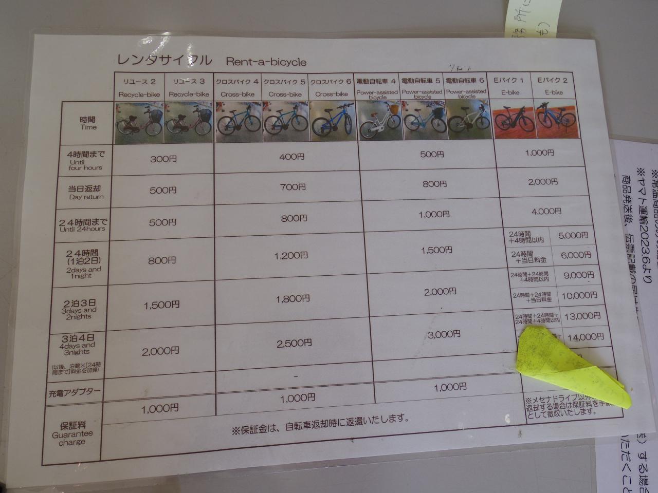 ママチャリ4時間300円、24時間でも500円と、とてもリーズナブルなお値段です。