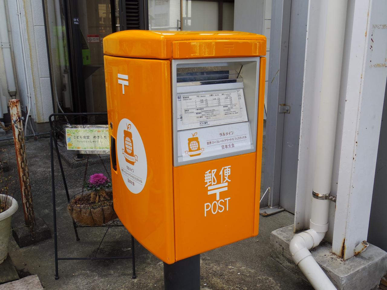 調べてみると、イギリス湖水地方発祥のマーマレード品評会の第1回日本大会が2019年に八幡浜で開催されたそうで、それを記念したマーマレード色のポストが八幡浜にはいくつかあるのだそうです。 -