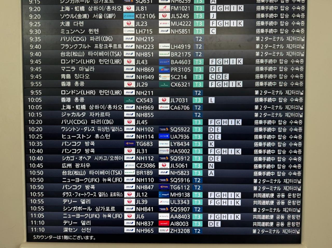 10:40発 JL31便のチェックインカウンターは、F,G,H,I,K。