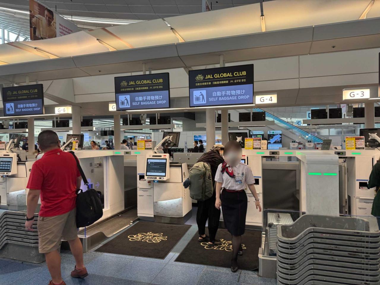 JGC会員でも自動チェックイン機を使うように促されます。 -