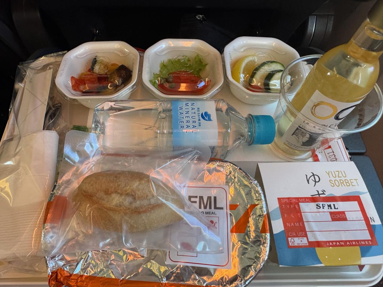 12時に機内食が真っ先に配膳されました(私が食べ終わる頃に通路側の人に配膳されました)。