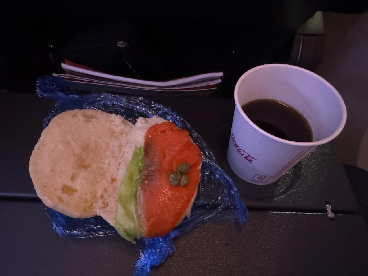 中身がサーモン1枚だけのさみしい味のしないパサパサのサンド。コーヒーで流し込みました。 -