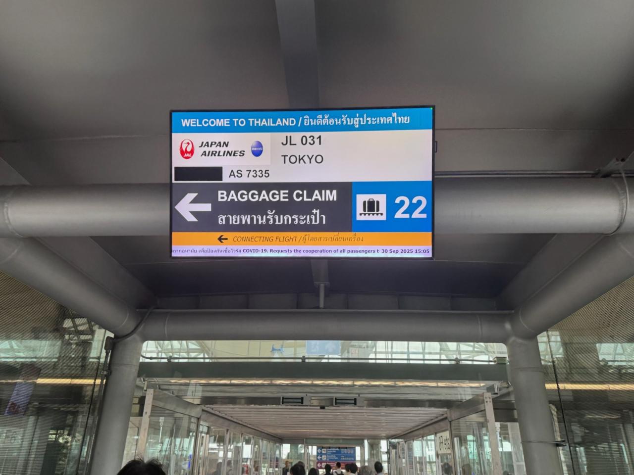 15:05 降機しました。受託手荷物は22番レーン。降機したところでの手荷物受取場所の表示は日本の空港でもやってほしいです。