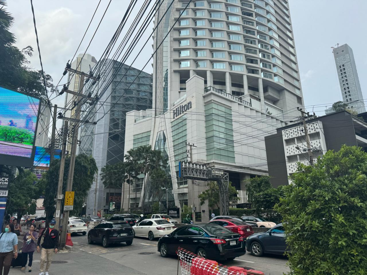 アソークの交差点の北に出ました。見えるはヒルトン・バンコク・グランデ・アソーク。