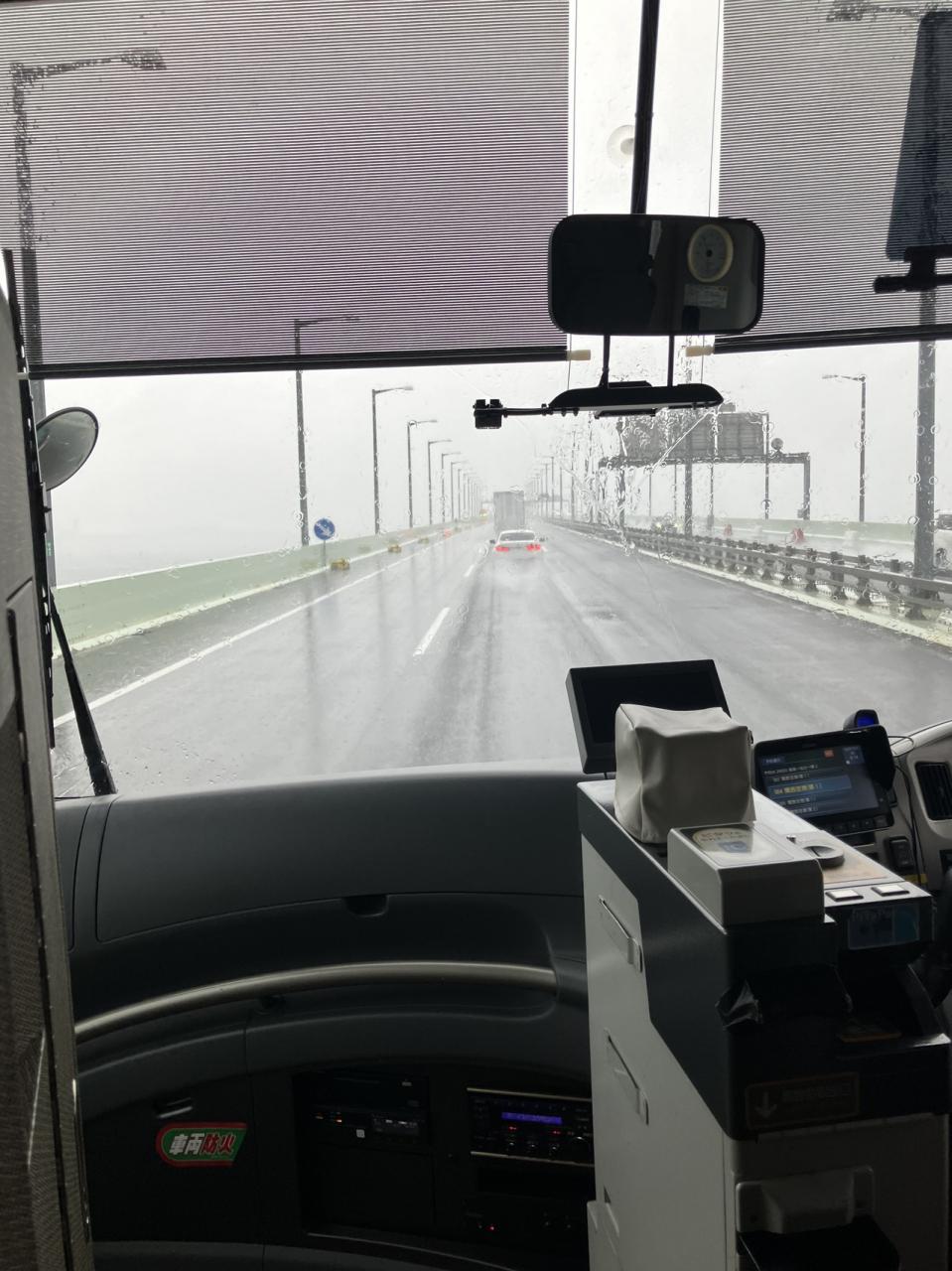 関空連絡橋を通ってますが結構雨が降ってます。 -