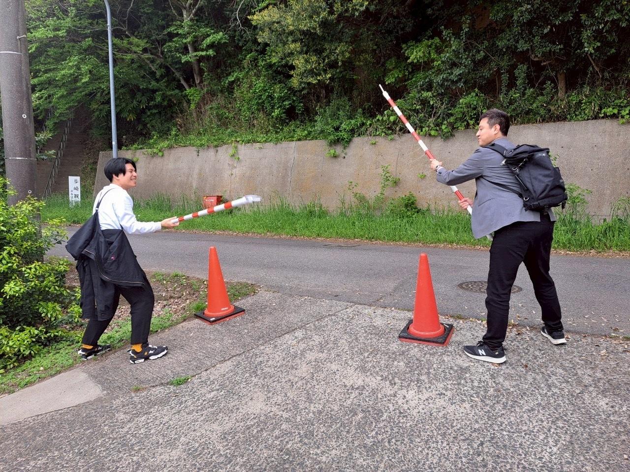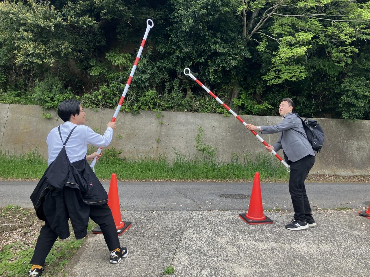 アホみたいにそのへんのポール取って叩きあっていた