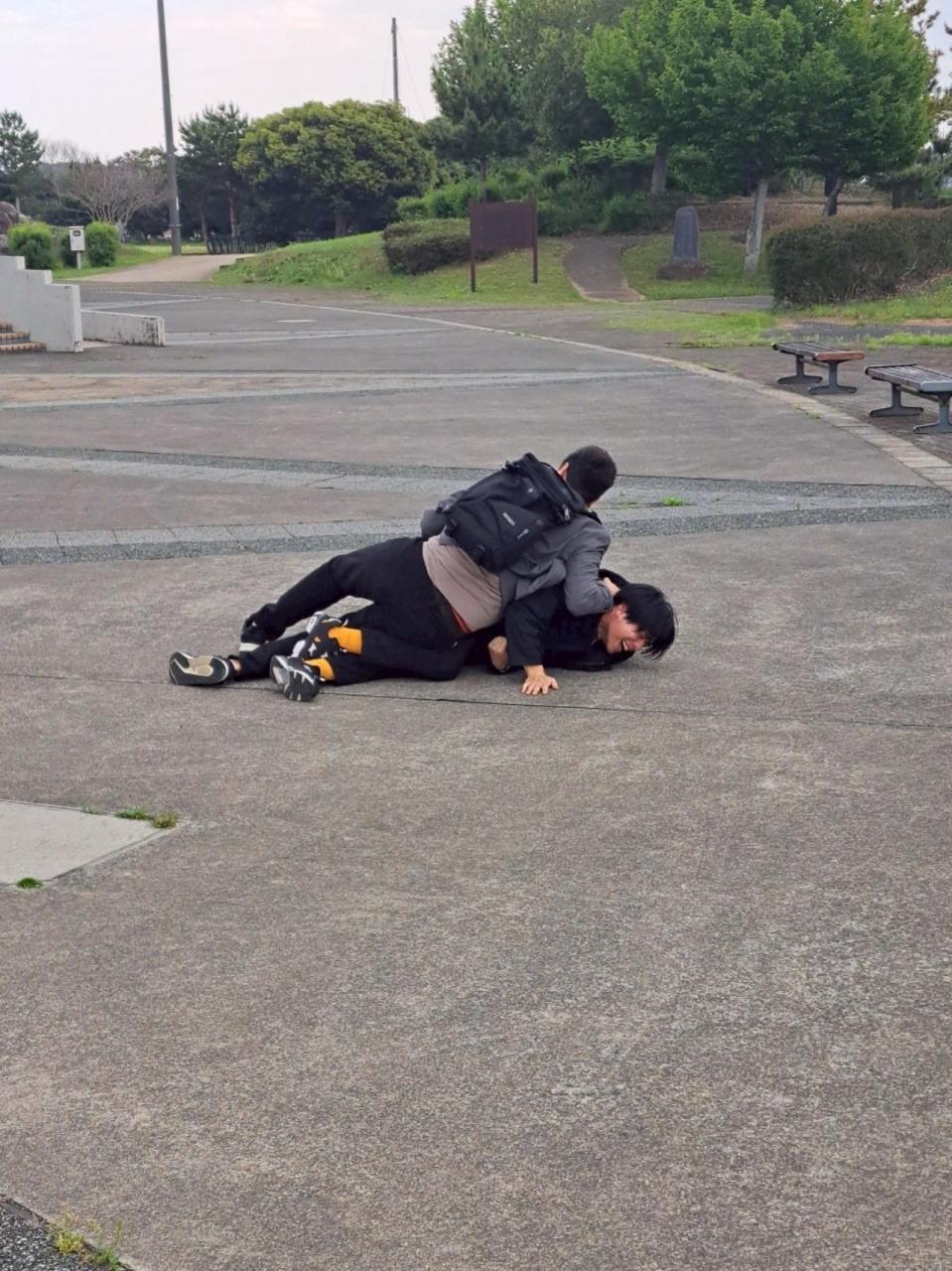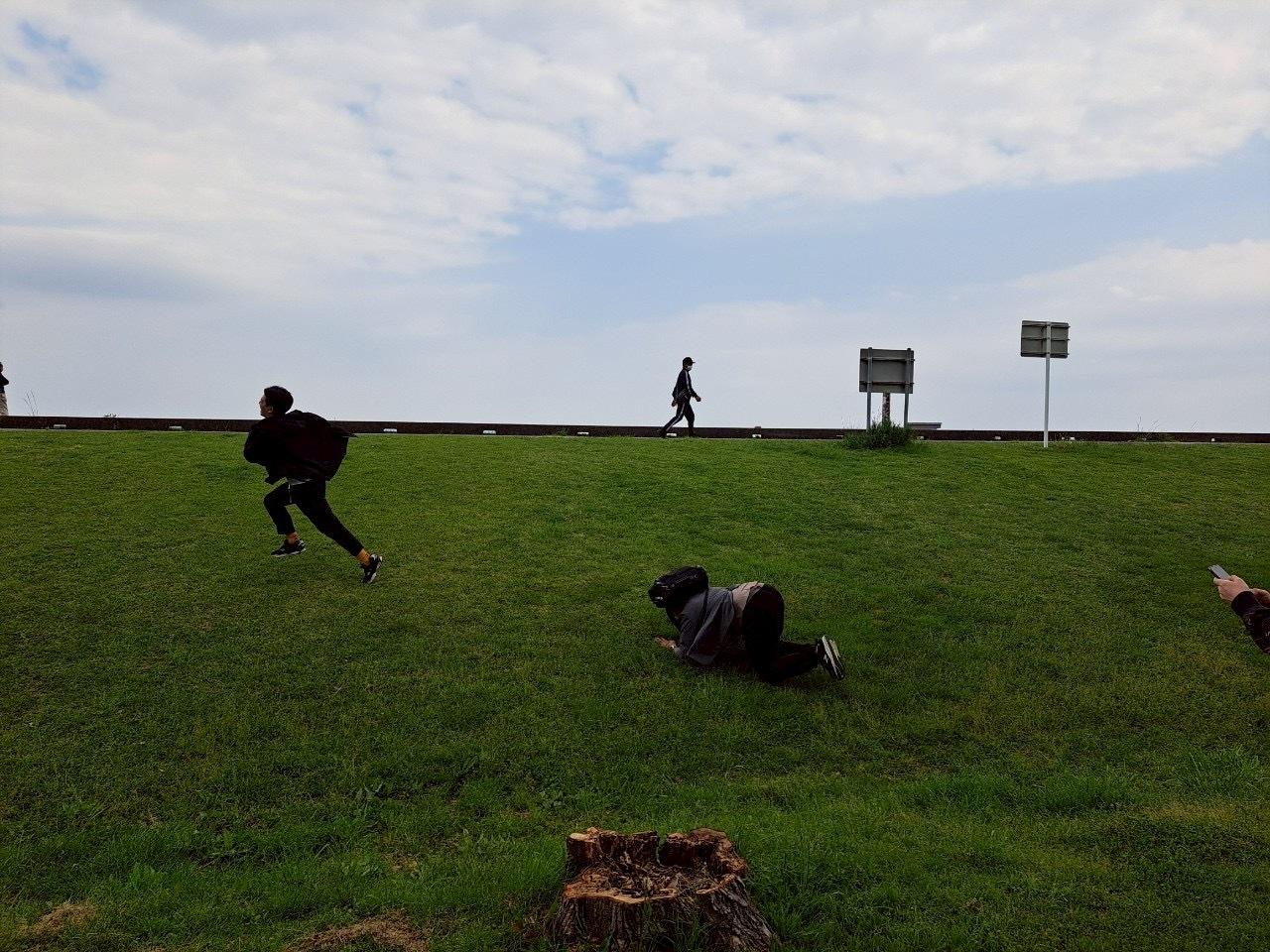 このアングルでしゃがんで写真撮ってたらそのまま押され自分も後ろに倒された