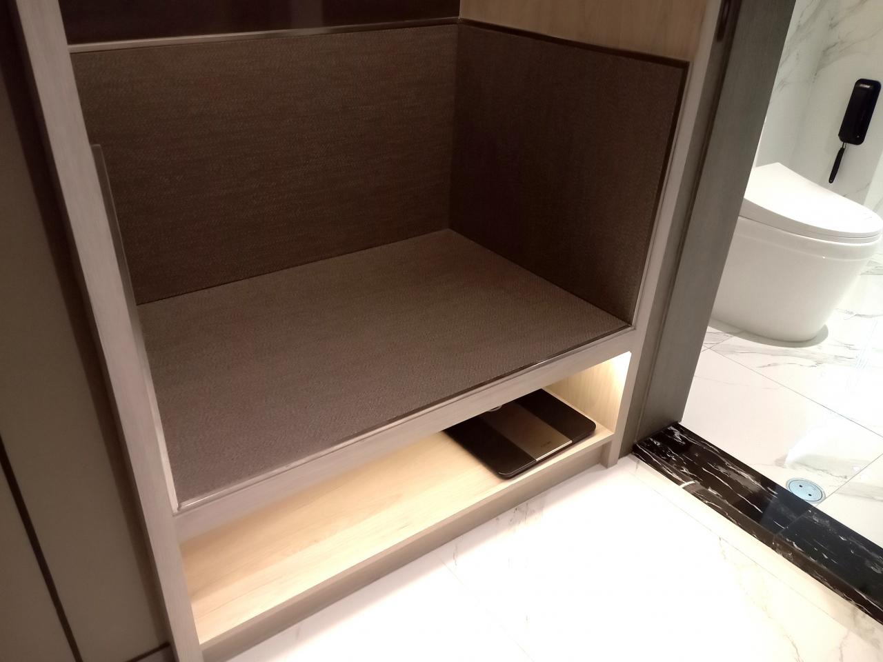 おっぴろげでキャリーケースをおけます。毎日体重もはかれます。