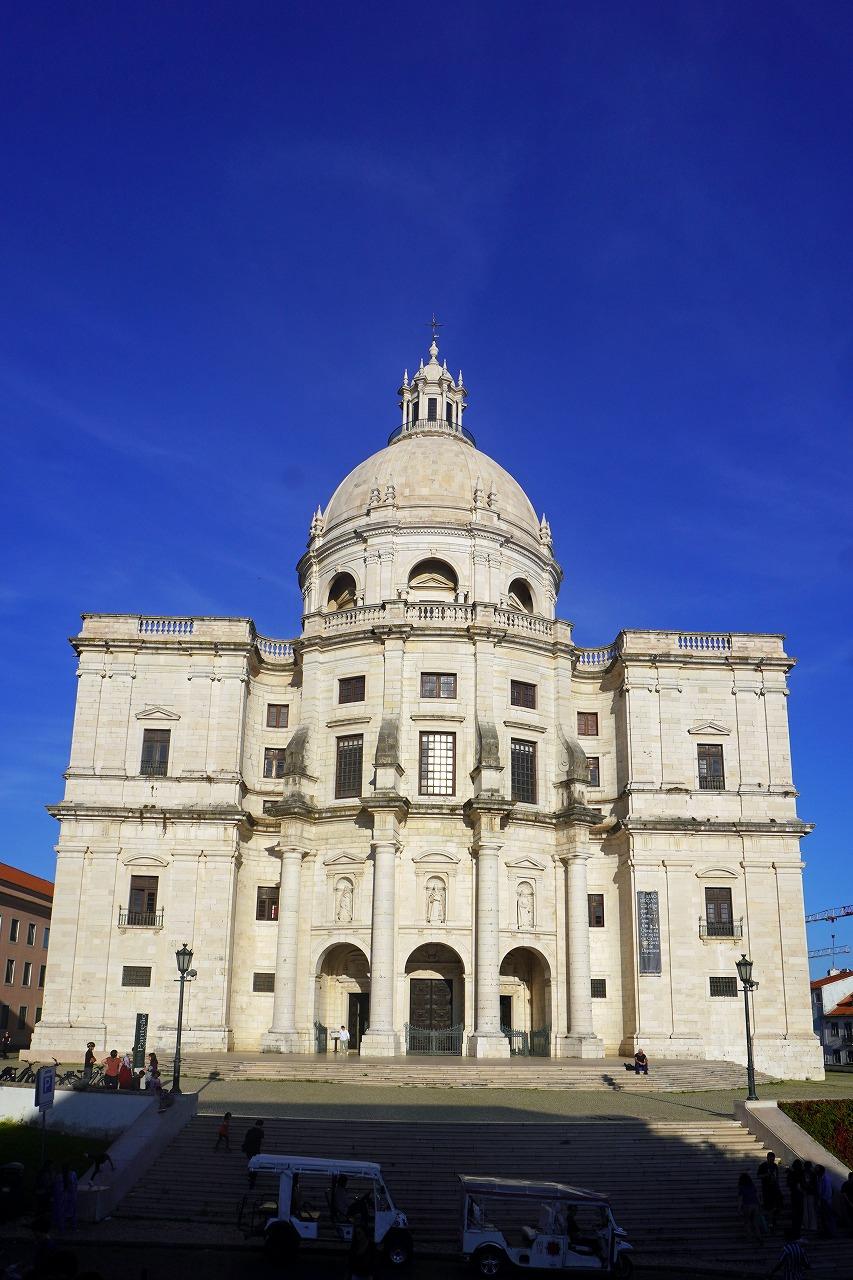 「国立アズレージョ博物館/Museu Nacional do Azulejo」の近くのバス停からバスに乗って「サンタ・アポロ―ニャ駅/Santa Apolónia」まで移動しました。そこから再び坂道を登って「サンタ・エングラシア教会/Ig, de Santa Engracia」を見学しました。17世紀創立の教会で20世紀に入ってから国立のパンテオン(名士合祀殿)となり、ポルトガルの著名な人物が葬られています。現在の教会の建物はブラガの殉教者聖エングラシアに捧げられた以前の教会の替わりで、最初の教会は1568年頃にマヌエル1世の王女マリアが後援していた聖エングラシアに捧げられました。1681年に最初の建物が崩壊したあとに現在の教会の建設が始り、新たな設計者は王室建築家でポルトガルバロック期の重要な人物の1人ジョアン・アントゥネスが行いました。ジョアン・アントゥネスはポルトガルで試みられたことのない精巧な設計を考え、教会はギリシャ十字(四方の長さが均等な十字)の形で、ファサードはフランチェスコ・ボッロミーニのバロック様式に似せました。ファサードにはガリレ・ホールと像を据えた3つのくぼみがあり、教会入り口には2人の天使が抱えたポルトガルの紋章を持つ美しいバロック様式の堂々とした正門があります。20世紀になってもうけられた高い中央ドームが印象的です。1966年の独裁者アントニオ・サラザール政権時代にこの教会は国立のパンテオンに指定されました。大統領のマヌエル・デ・アリアガ、国民的ファド歌手アマリア・ロドリゲスらの人物が埋葬され、ルイス・デ・カモンイス、ペドロ・アルヴァレス・カブラル、アフォンソ・デ・アルブケルケ、ヌノ・アルヴァレス・ペレイラ、ヴァスコ・ダ・ガマ、エンリケ航海王子らの記念碑も納められています。その後に先の旅行記の「サン・ヴィセンテ・デ・フォーラ教会」を見学し、教会前の路面電車乗り場からリスボンの市電で一番人気の28に乗りました。やはりこの路線はリスボンの町を感じるには欠かせないルートだと思います。一度終点まで乗って折り返したのでずっと座ることが出来ました。アウグスタ通り近くで降りた後は夕暮れの美しい通りを歩き、「Nono HK/玖記香港」という一見すると日本の居酒屋のような中華レストランで思いっきり晩ご飯を食べました。