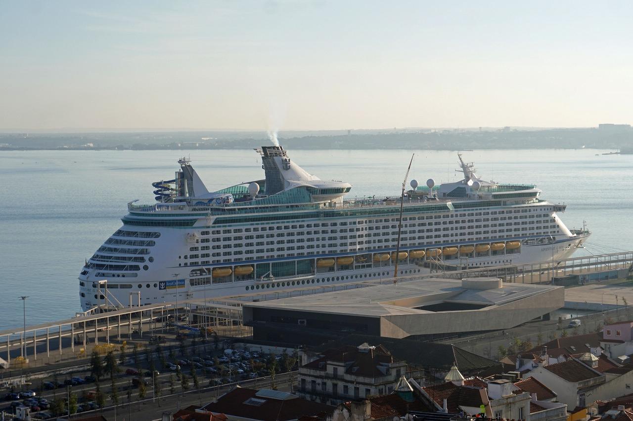 その後ろにはロイヤルカリビアン・クルーズの「アドベンチャー・オブ・ザ・シーズ」が停泊しています。こちらは137,000トンの巨大なクルーズ船です。