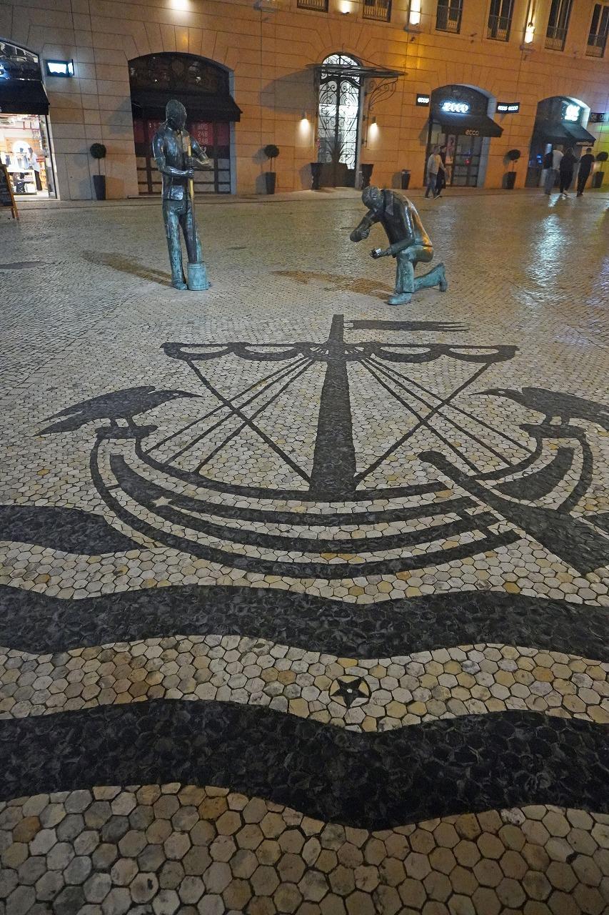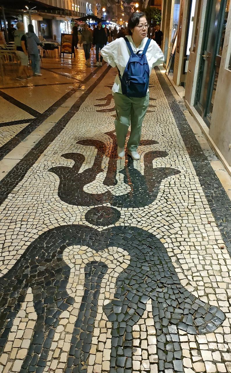 リスボンの歩道の床はカルサーダスという白い石と黒い石を組み合わせて模様を描く舗装芸術になっています。幾何学模様や植物、歴史的なシンボルや波模様や海の生き物を描くのが特徴です。ポルトガル以外にも植民地だったマカオなどにも残されています。