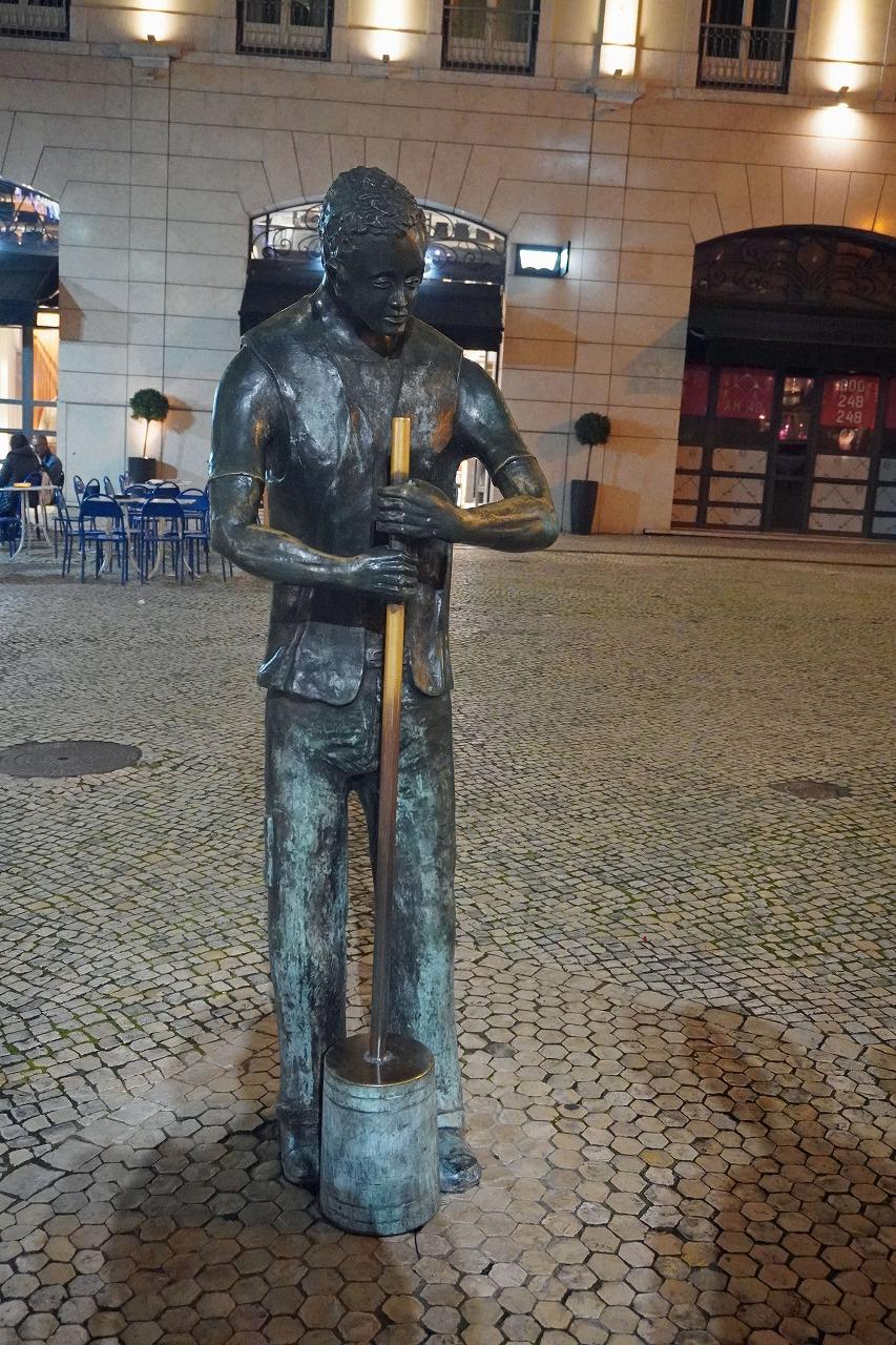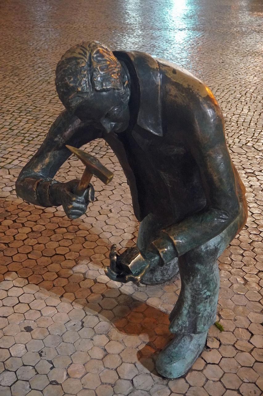 レスタウドス広場には「石畳職人の記念碑」があります。「カルサーダ・ポルトゥゲーゼを作る職人を称えています。1体はハンマーで石を切っています。