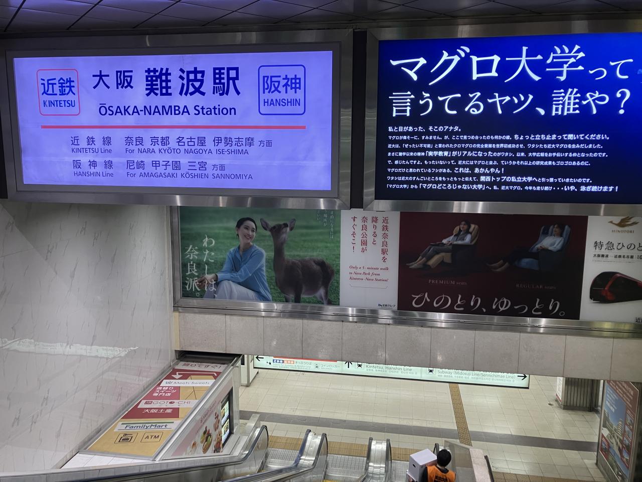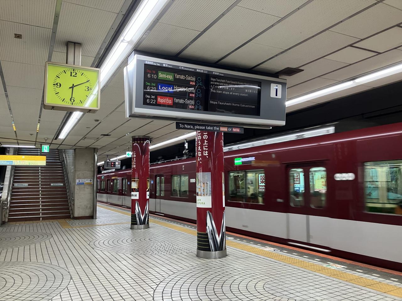 近鉄の駅までは少し歩きます。早朝で人が少ないのですいすい。地下駅の近鉄「大阪難波駅」に到着。