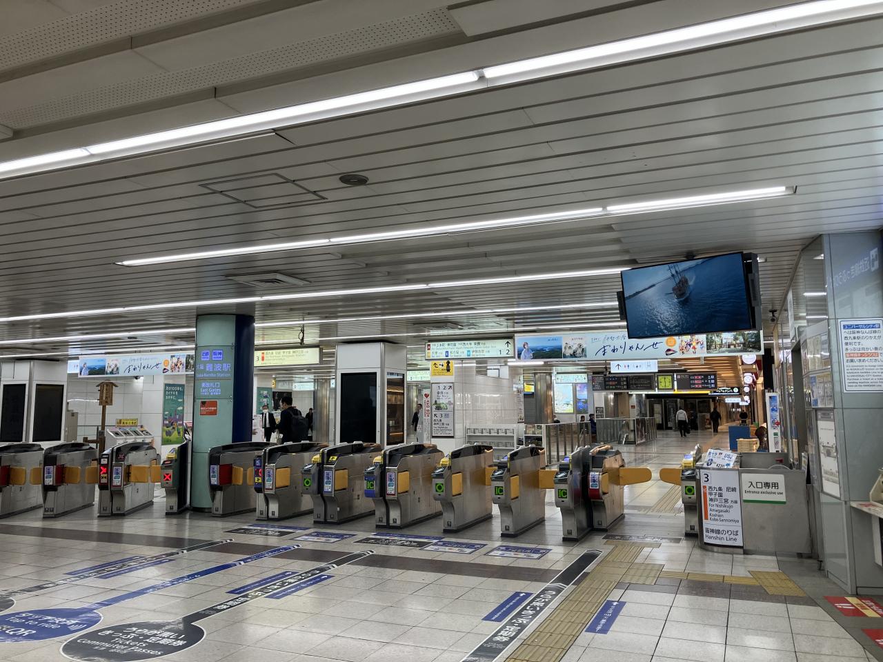 2026年 4月13日(月) 05:50、南海電鉄なんば駅の改札口。