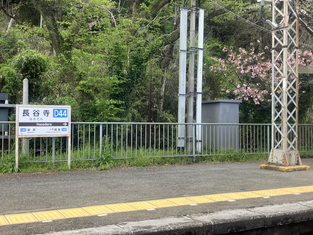 07:15「長谷寺駅」桜井市。有名なお寺の最寄り。「わらしべ長者」冒頭の観音様のお告げの場所です。どんどん山深くなっていくのに乗客でいっぱいだった。