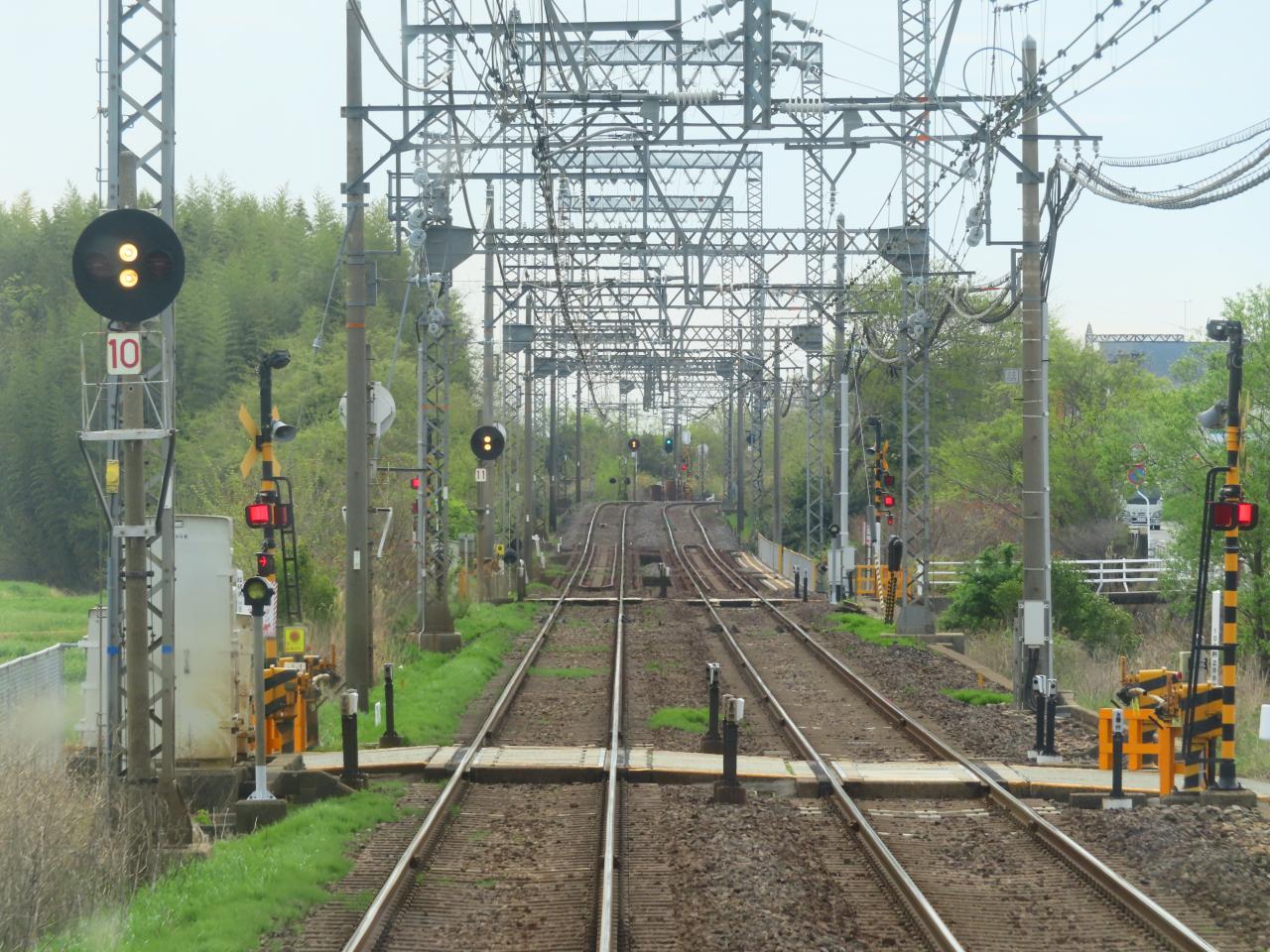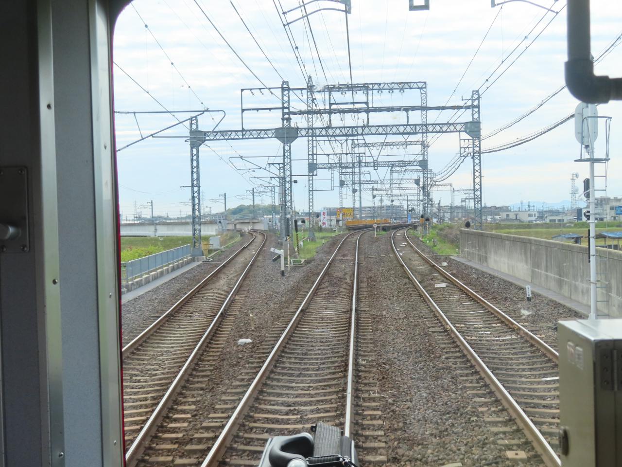 08:20、すっかり平野部に出てきました。スピードもぐんぐんアップ。近鉄には標準軌と狭軌と両方あって、ここは標準軌。