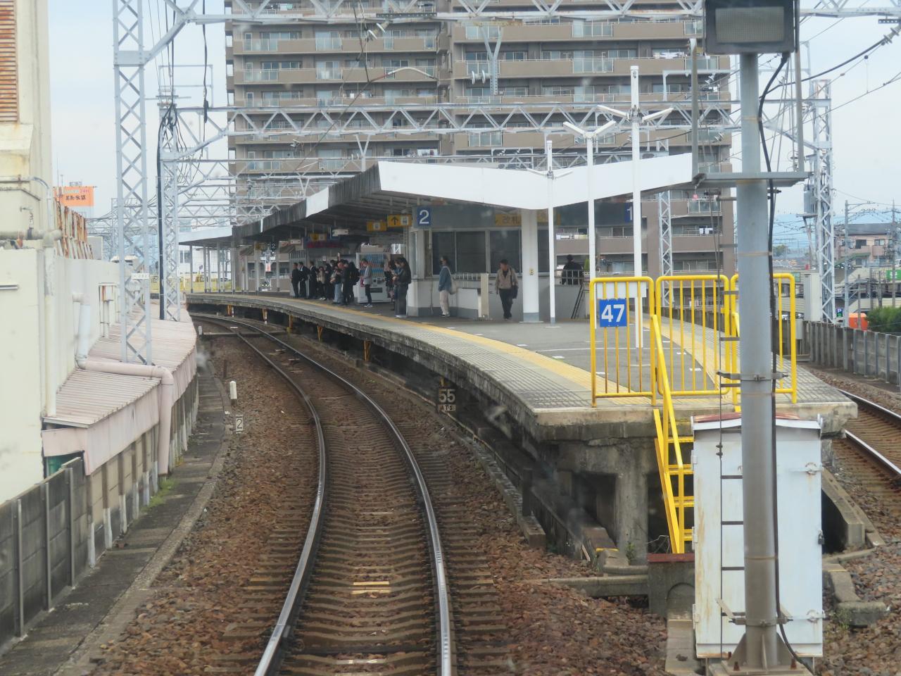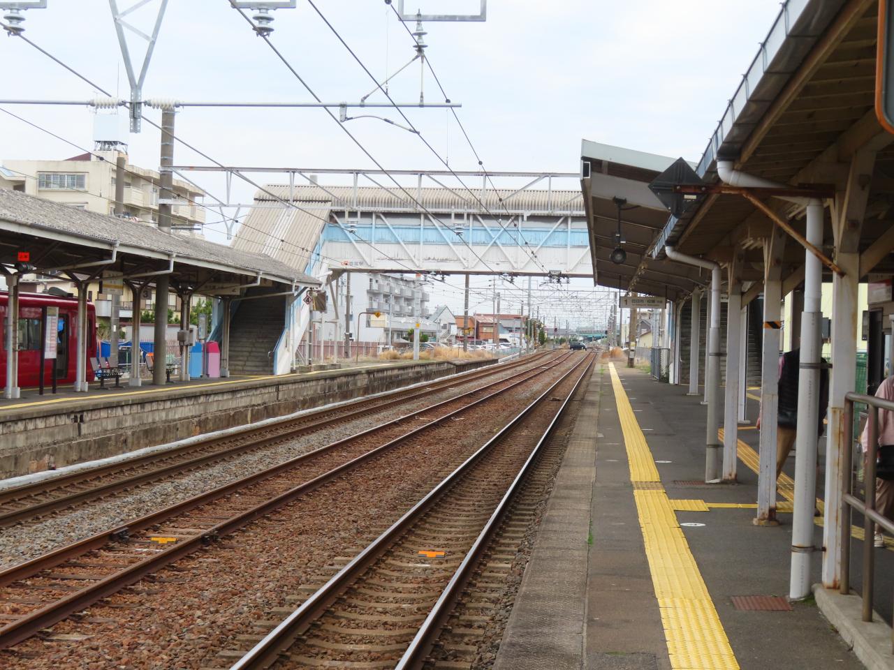 駅舎側から見た跨線橋。この駅、珍しくJRが大きくて私鉄が単線。逆の方がはるかに多い。