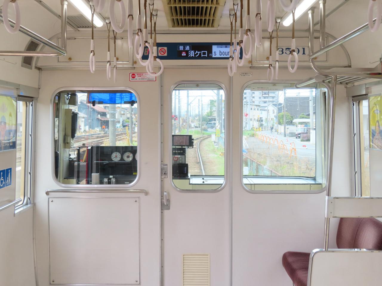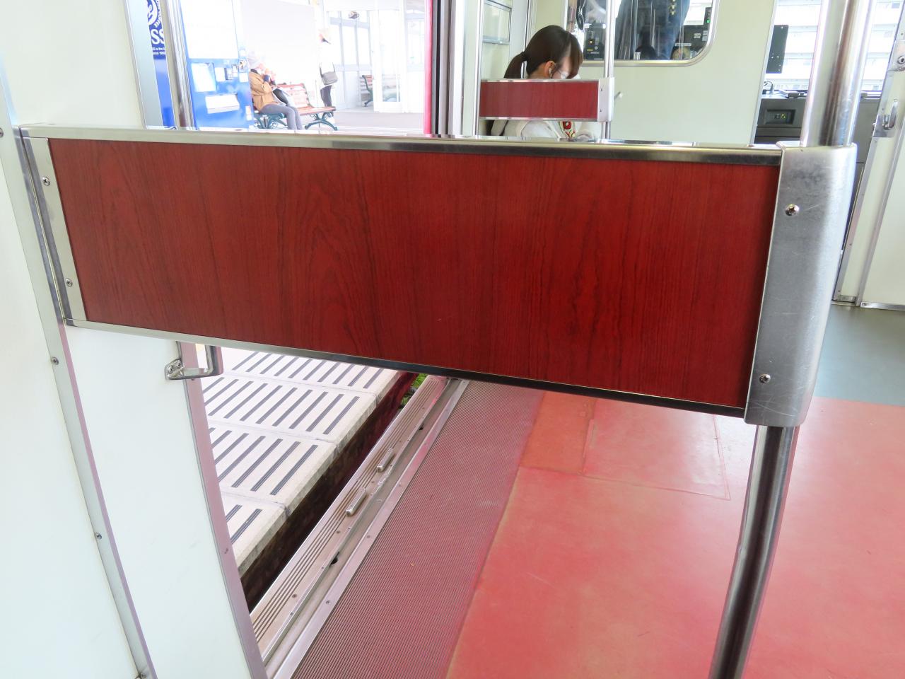 運転台まわり。名鉄はたぶん全編成、運転席の後ろが車椅子等のスペースになっていました。ゆえに向かって右のあの席がベストシートです(笑)