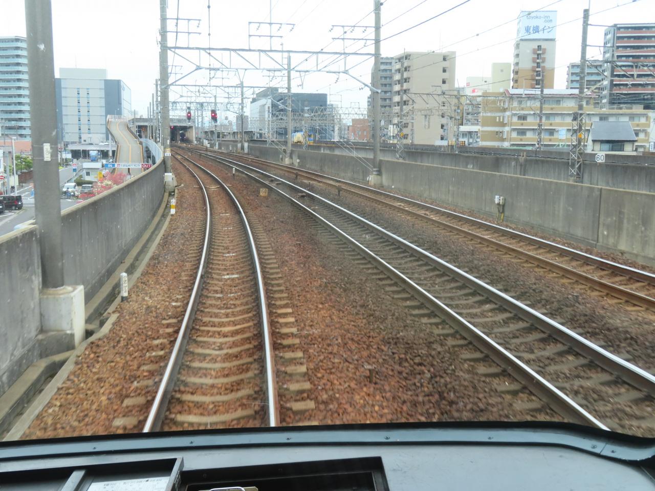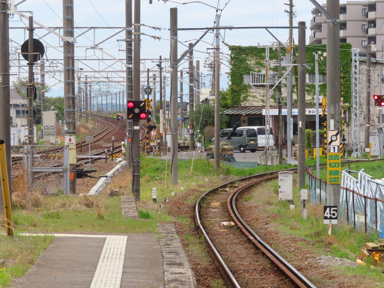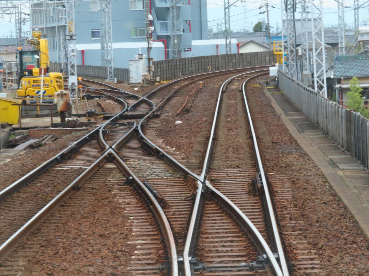 左端のカーブは「伊勢中川駅」を通らず直接名古屋方面へ向かう特急専用の線路。