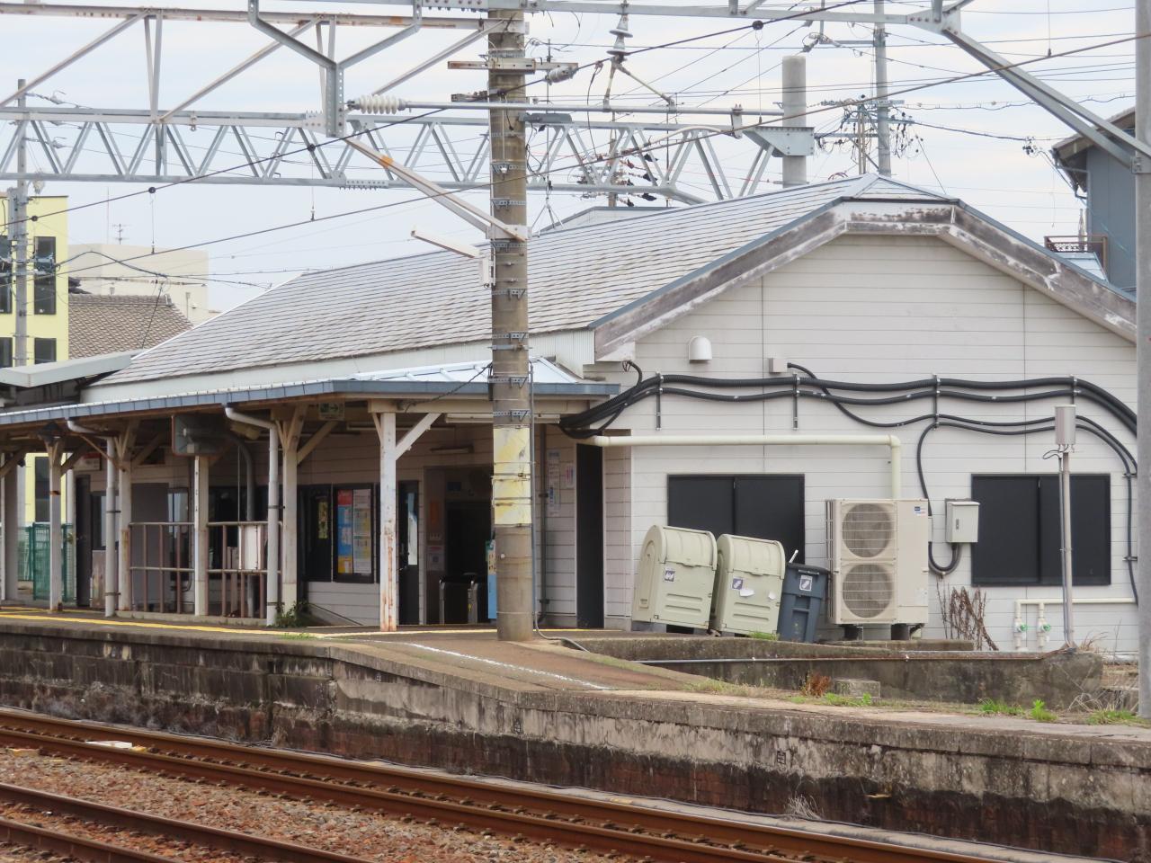 JR関西本線と共用の駅。近鉄の駅は少し離れています。弥富が市になったのは2006年。すぐそばに「三重県桑名郡木曽岬町」があって驚きです。木曽川東岸に三重県があるなんて。