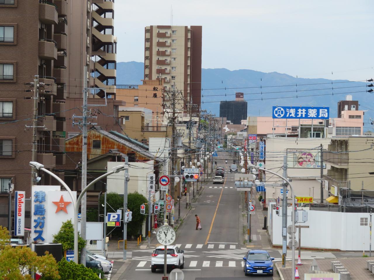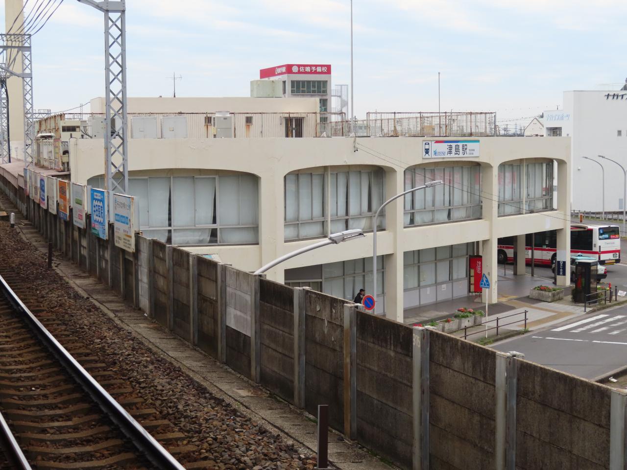 ホームからの風景。津島ガスという看板が左下に写っていた。