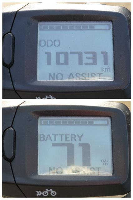正午頃、自宅に戻った時の愛車、パナソニック・ジェッターのオドメーターとバッテリー残、オドメーターです。