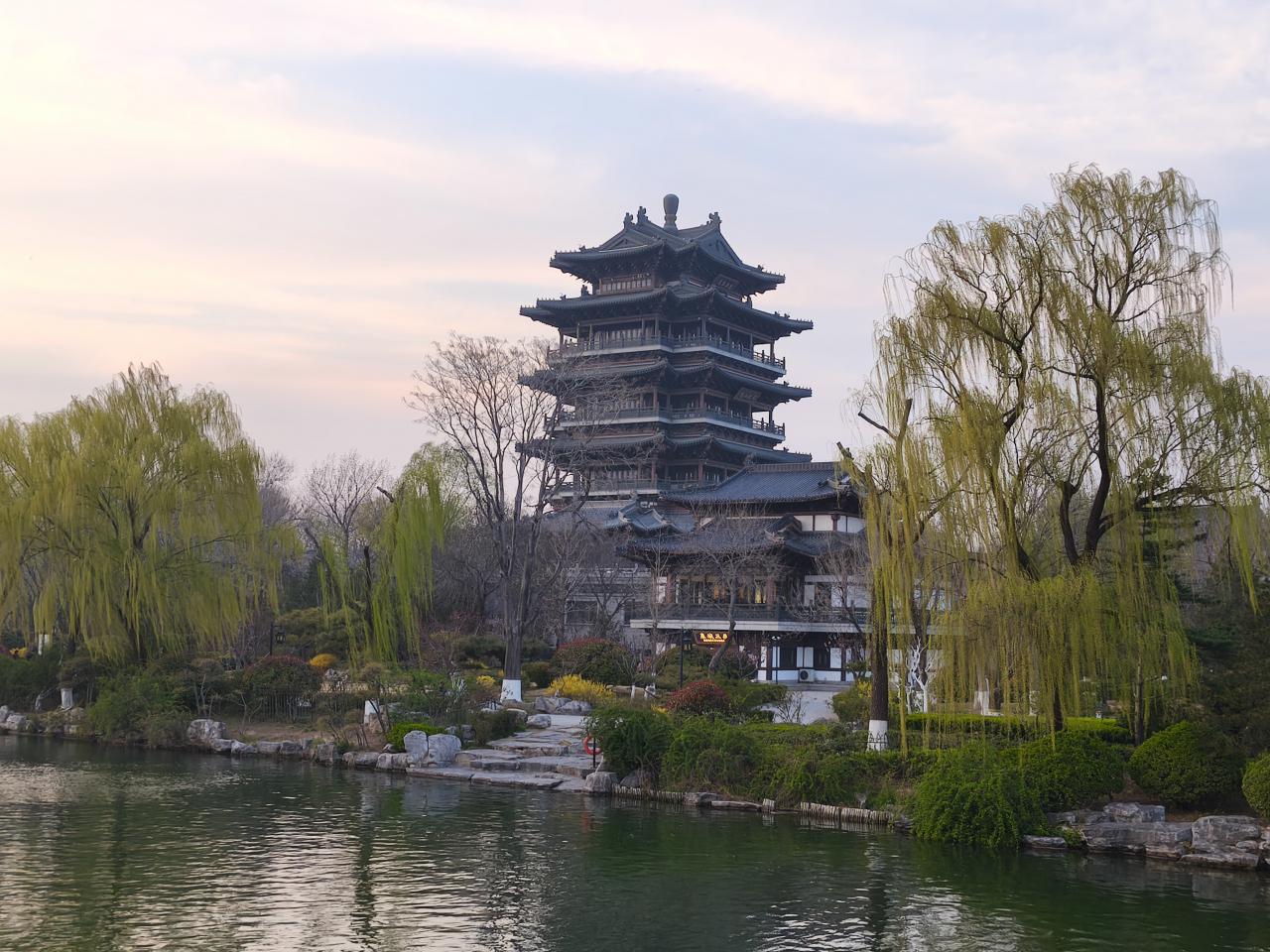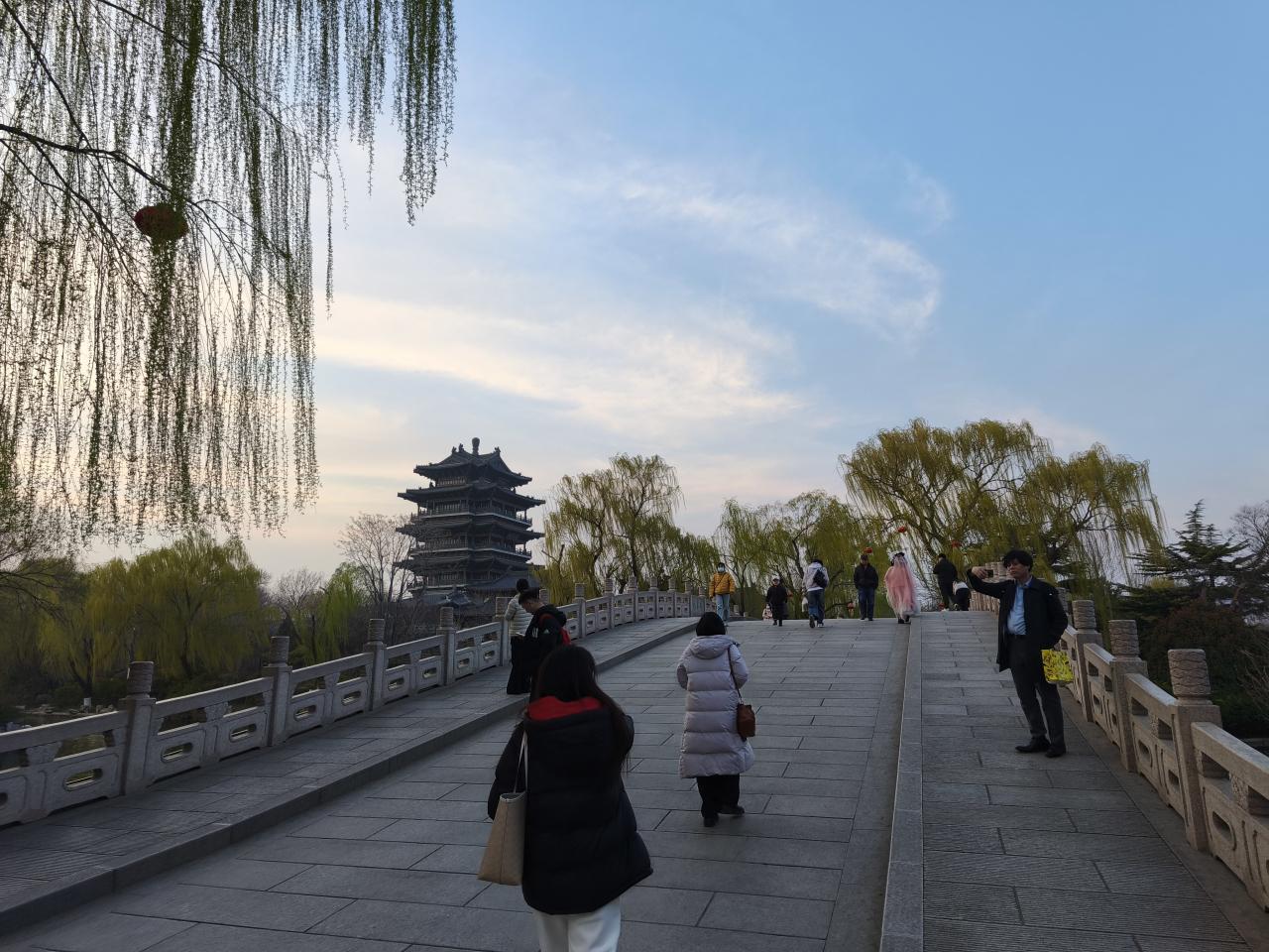 「鵲華橋」という橋を渡って超然楼にい行ってみる。夕日がきれいだ。