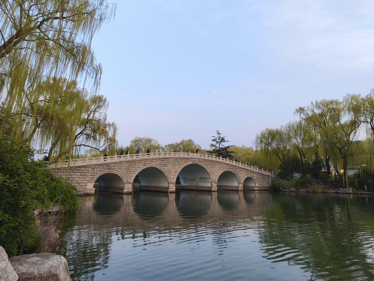 「鵲華橋」を下から見るとこんな感じ。眼鏡橋になっている。