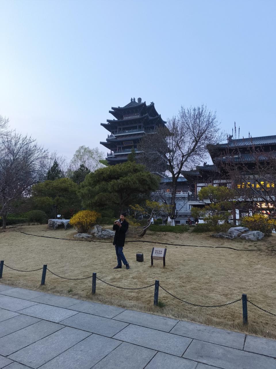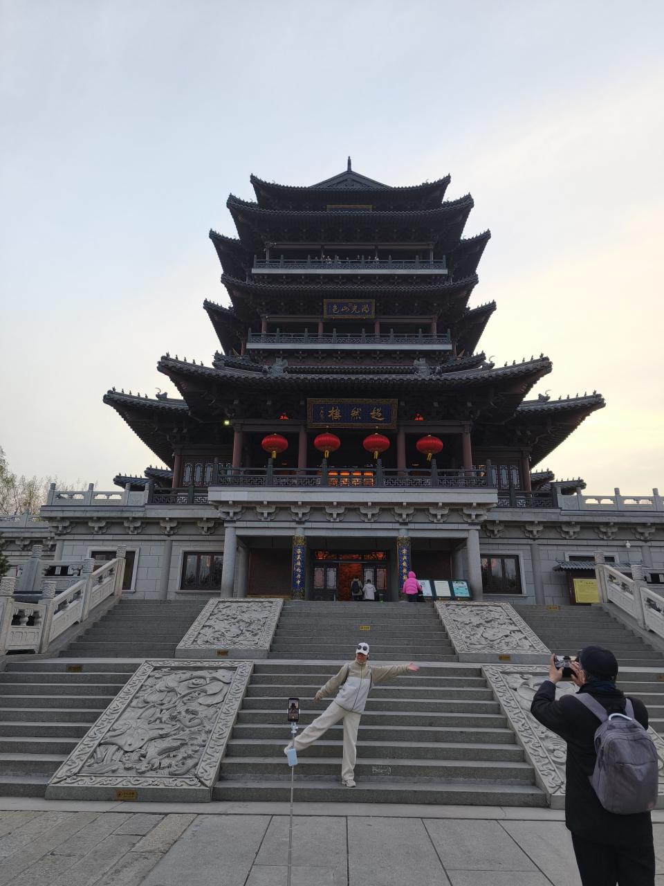 「超然楼」のふもとに到着。みんな思い思いのポーズを決めて写真を撮っていた。中にも入れるのだが、有料だったため自分は外からのみ見学。