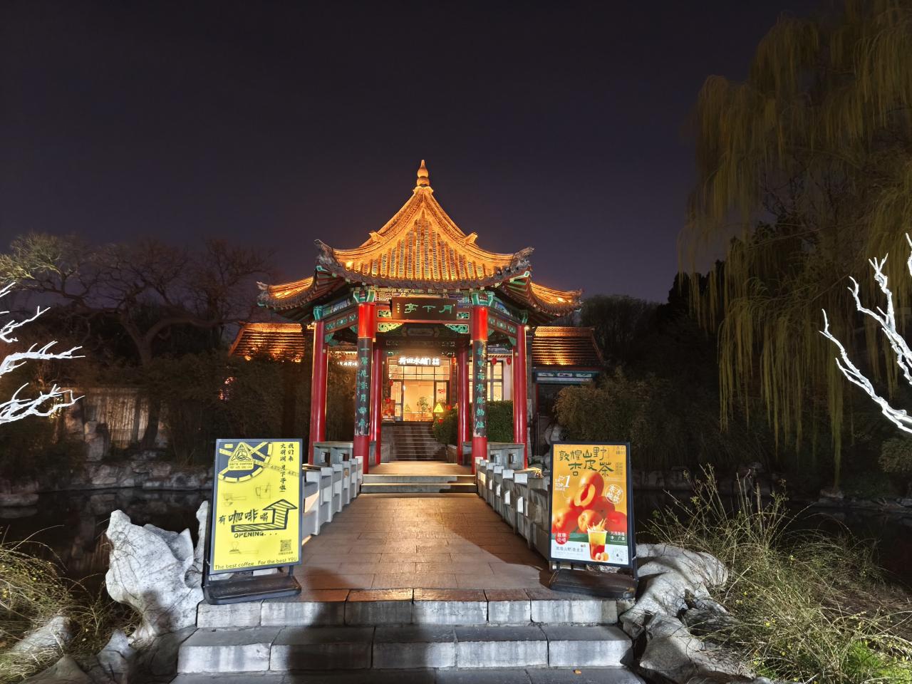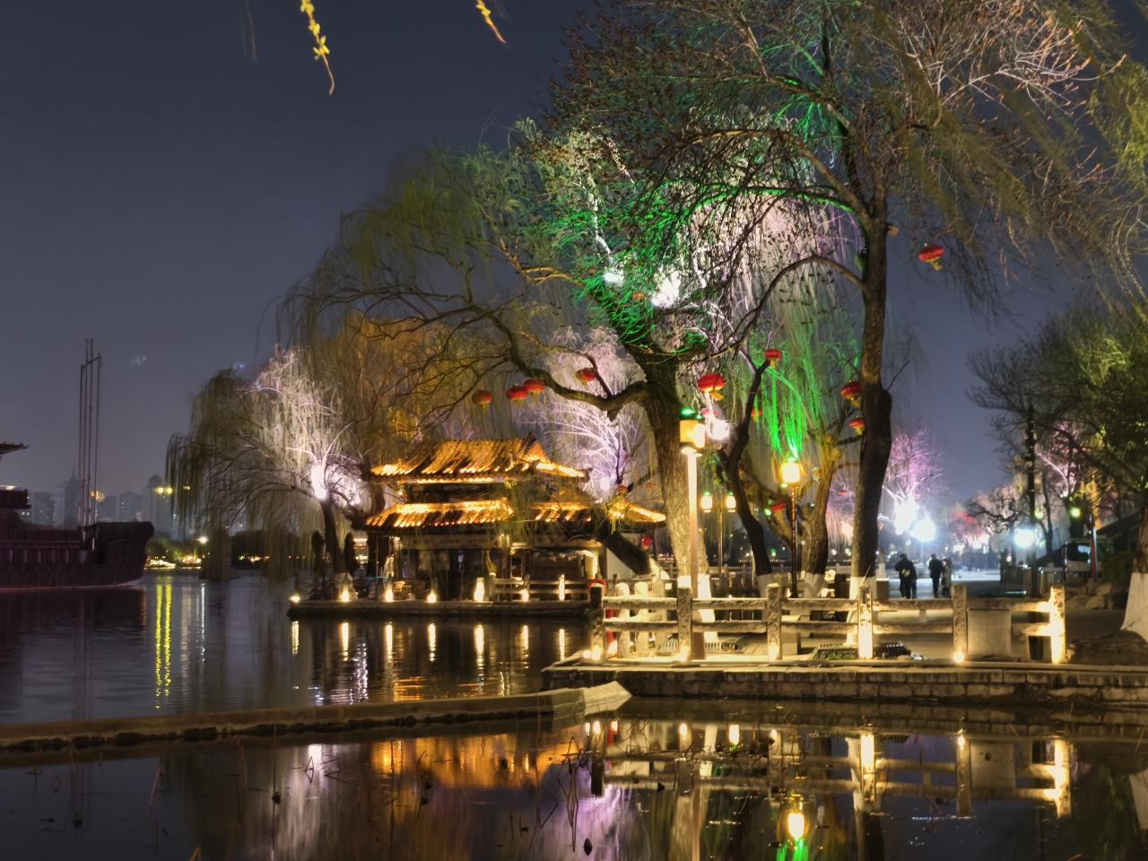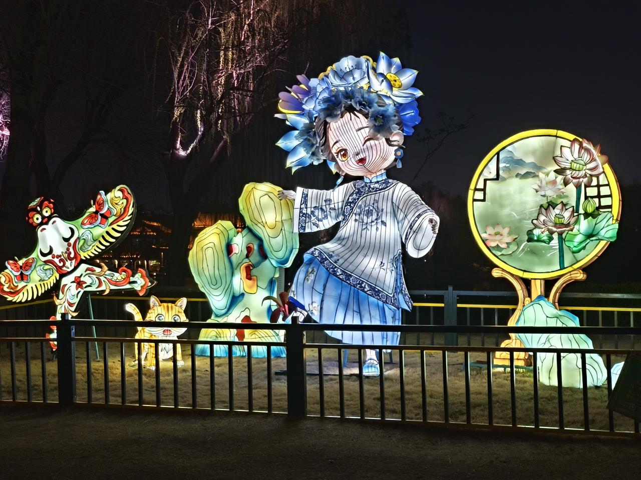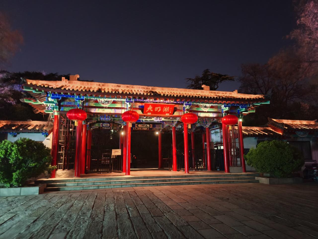 近くのレストランで夕食を取った後、再び夜の大明湖へ散歩に出かけた。園内には夏雨荷のランタンが設置されていた。夏雨荷は、清朝乾隆帝をめぐる恋物語をもとにしたドラマ・作品世界で広く知られる女性で、大明湖の観光PRキャラクターとして定着している。