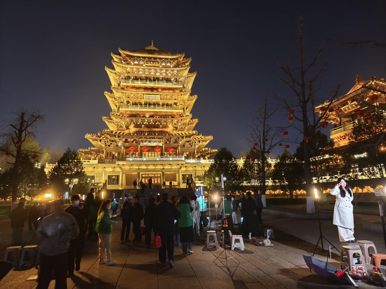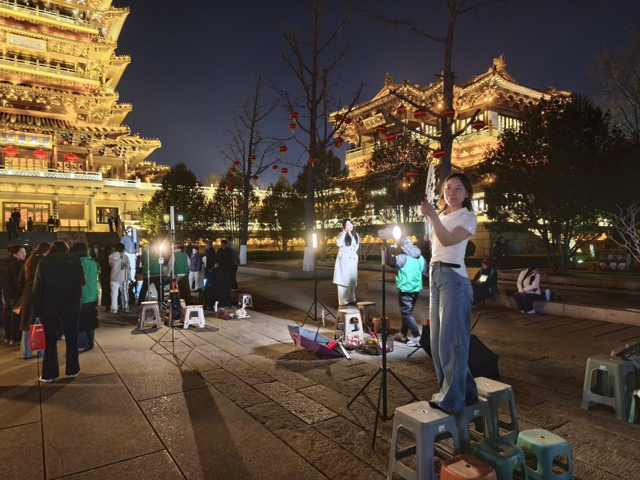 「超然楼」の下にはカメラマンが多数待機しており、みんな思い思いに映え写真を撮っていた。ライブ配信をしている人もいた。