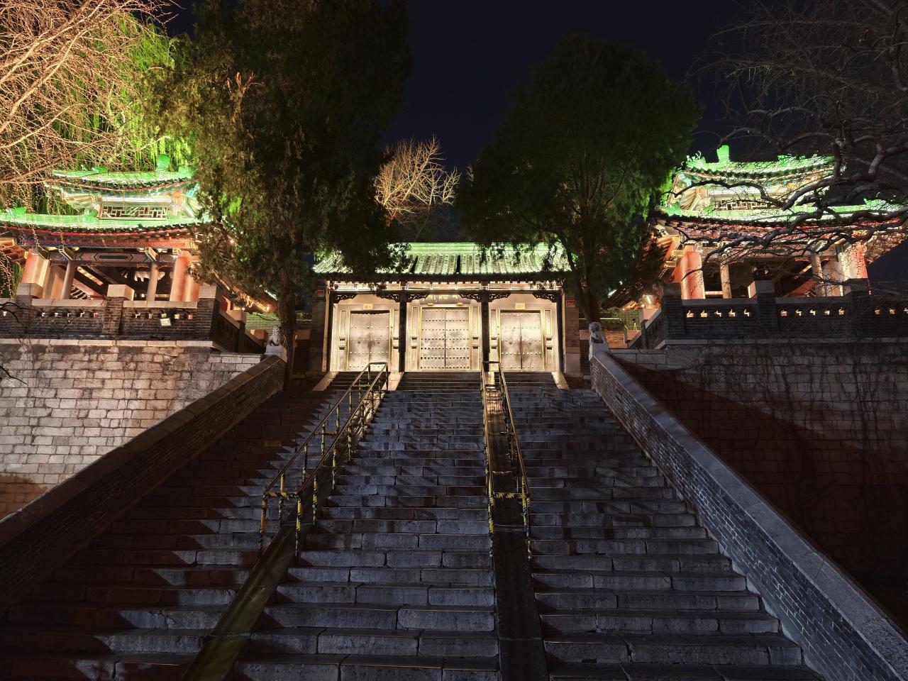 入口に戻ってくると、門がライトアップされていた。