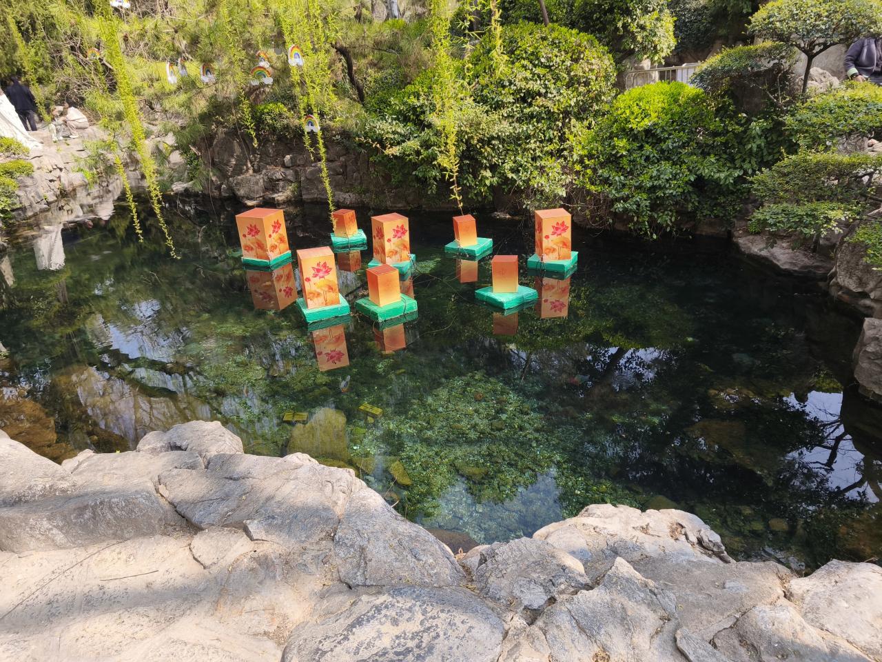 ランタンが泉に浮かぶ。