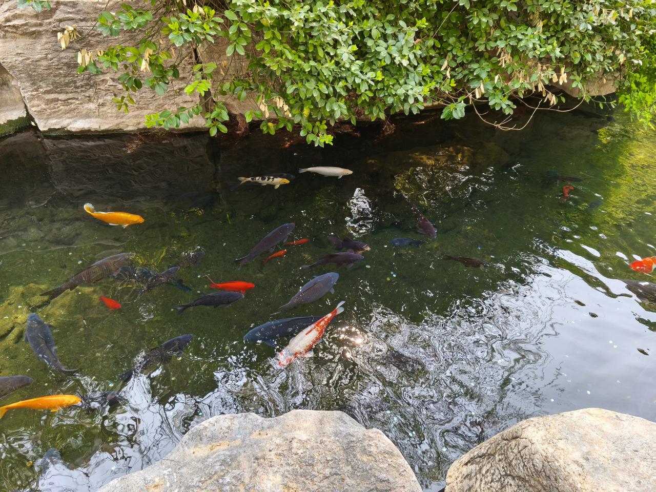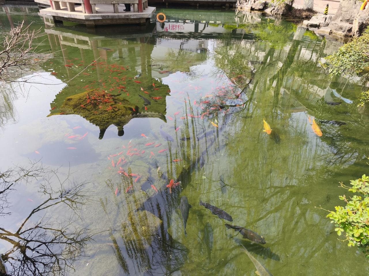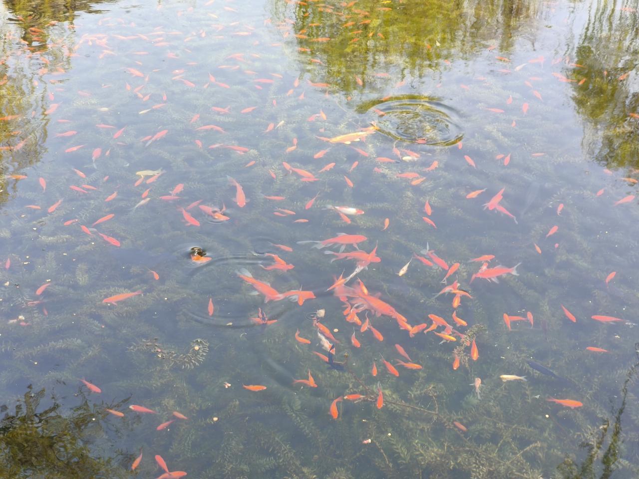 別の池には錦鯉がたくさんいた。